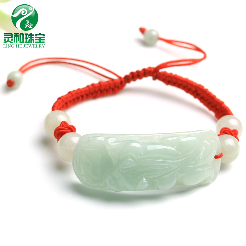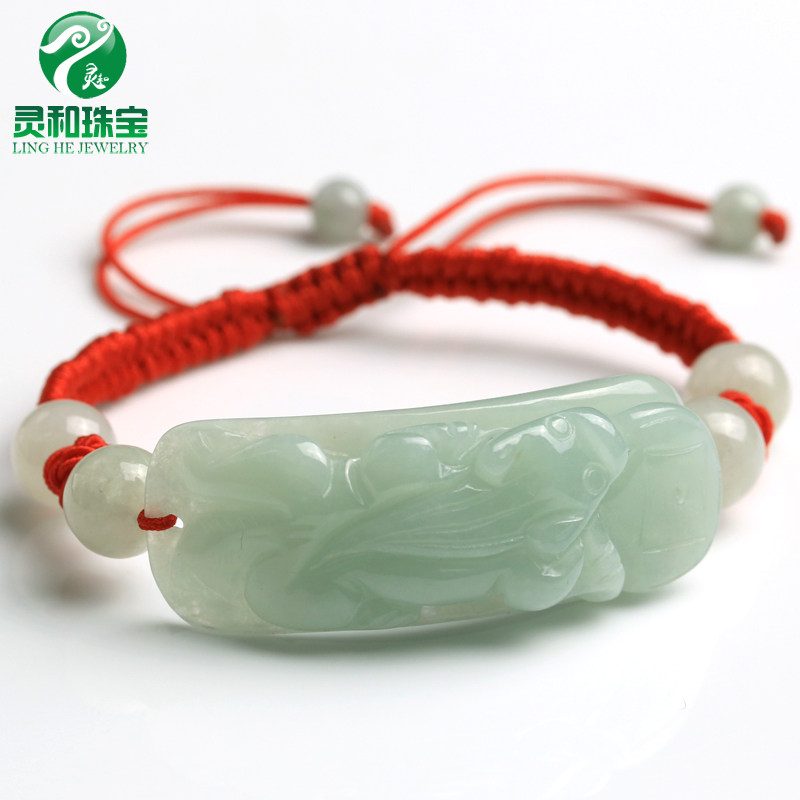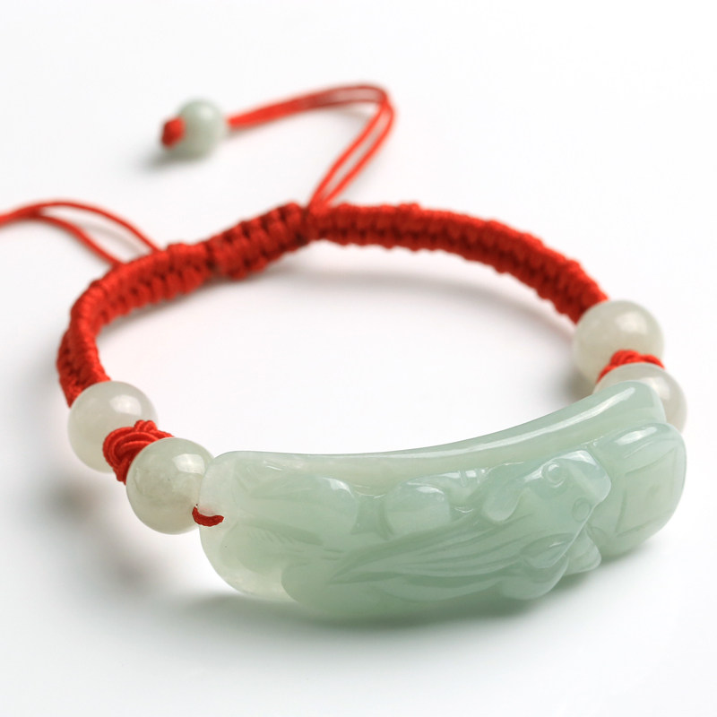 Изумрудная реплика из нефрита подходит для мужчин и женщин, регулируемый браслет из красной нити ручной работы, женский стиль
