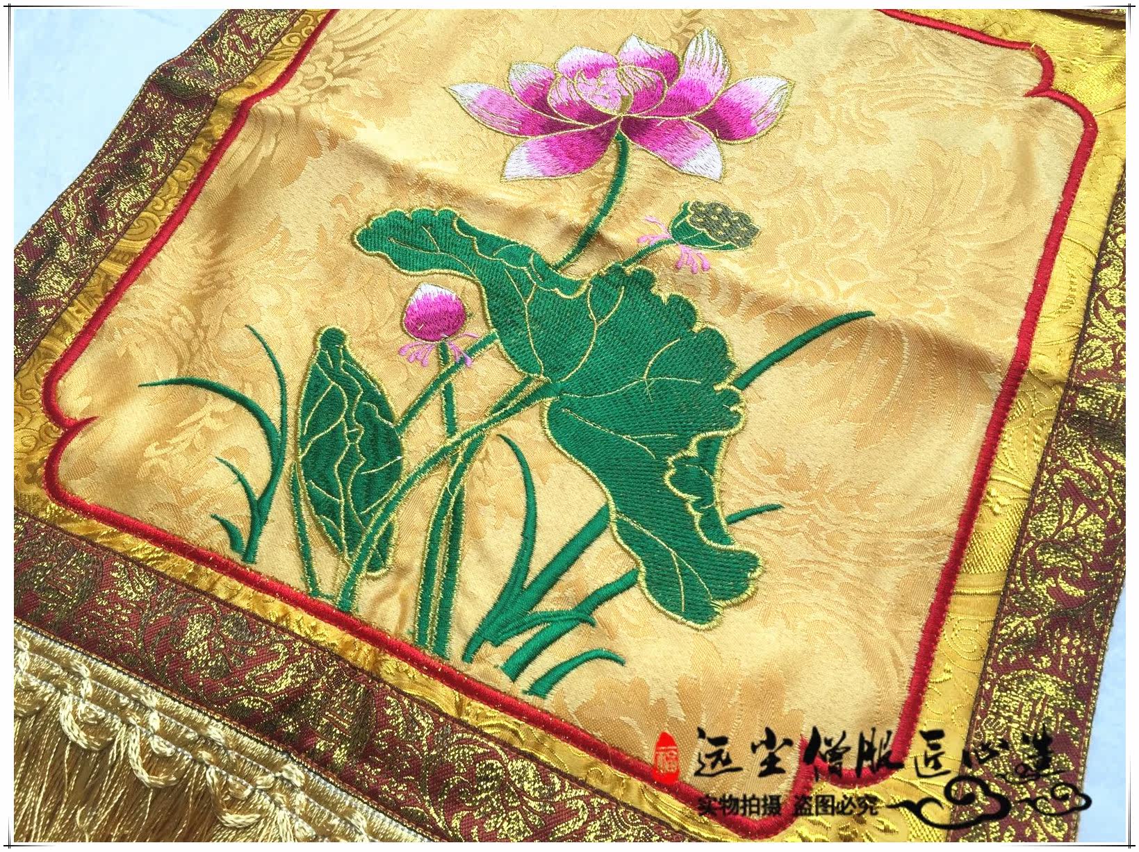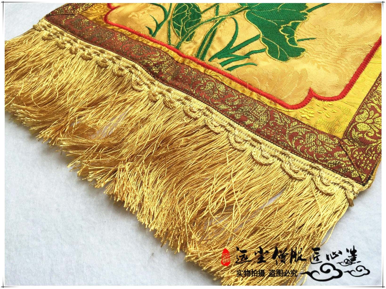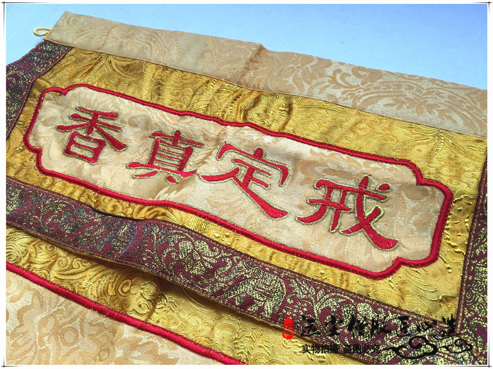 Буддийский поставляет желтое золото шелковое атласное кольцо, установленное в храме Храм Женксиан