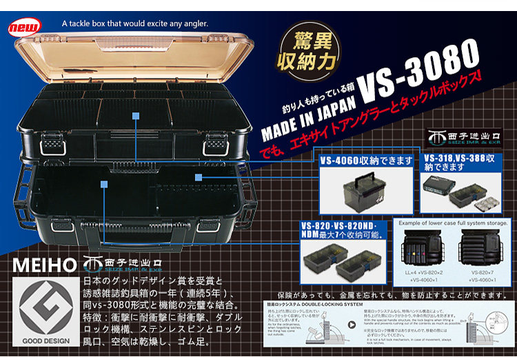 Япония импортировал Meiho Mingbang vs-3080 Road Asian Box Fake Bait Box Box Fishing Double-Layer Toolbox Box