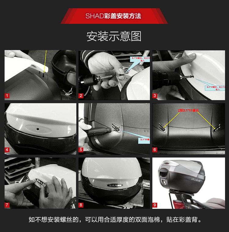 Шад Чарданг Мотоцикл Хвостовая коробка 29/33/36/40/45/48 Крышка коробки хвоста