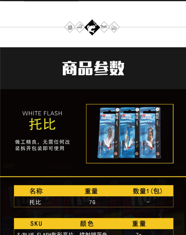 Абу Абу [Тоби] ложка блестки Луя приманка 7 грамм/12 граммов палочковой басовой бас -басовой сомы сома приманка