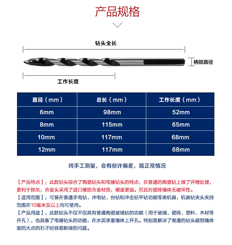Универсальное металлическое керамическое настенное стеклянное сверло, фонарь, электродрель