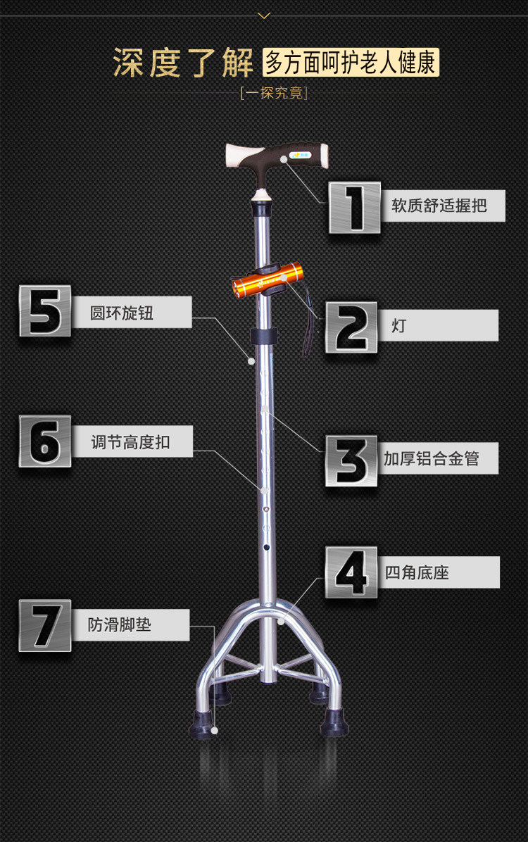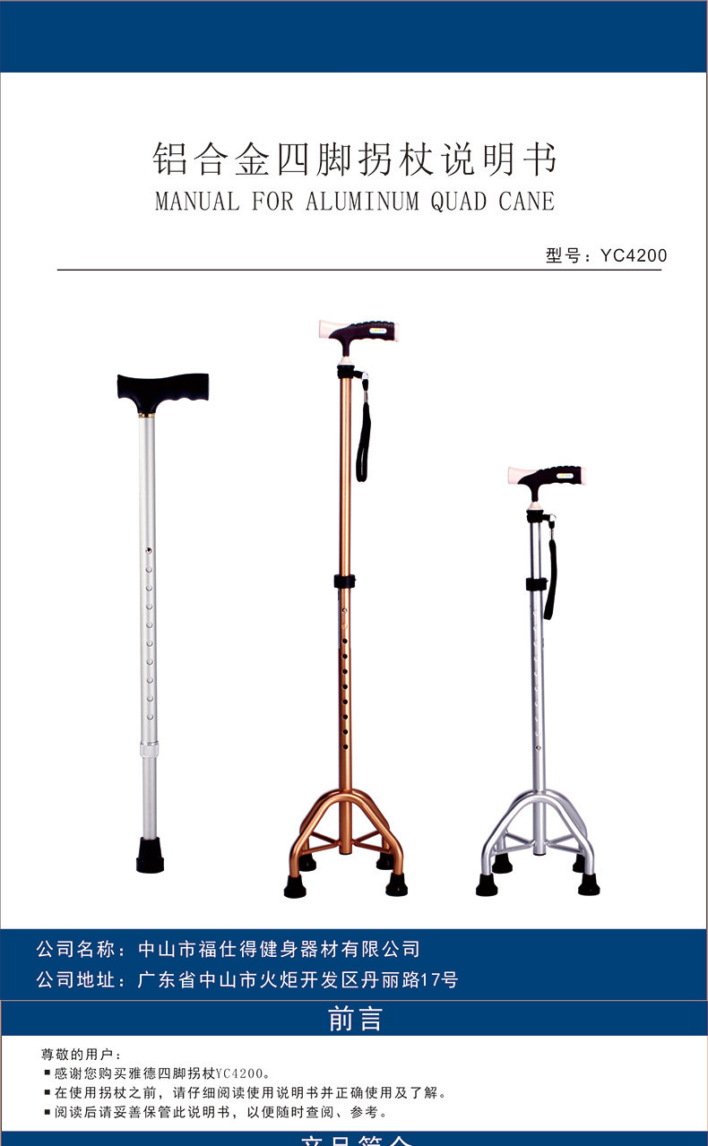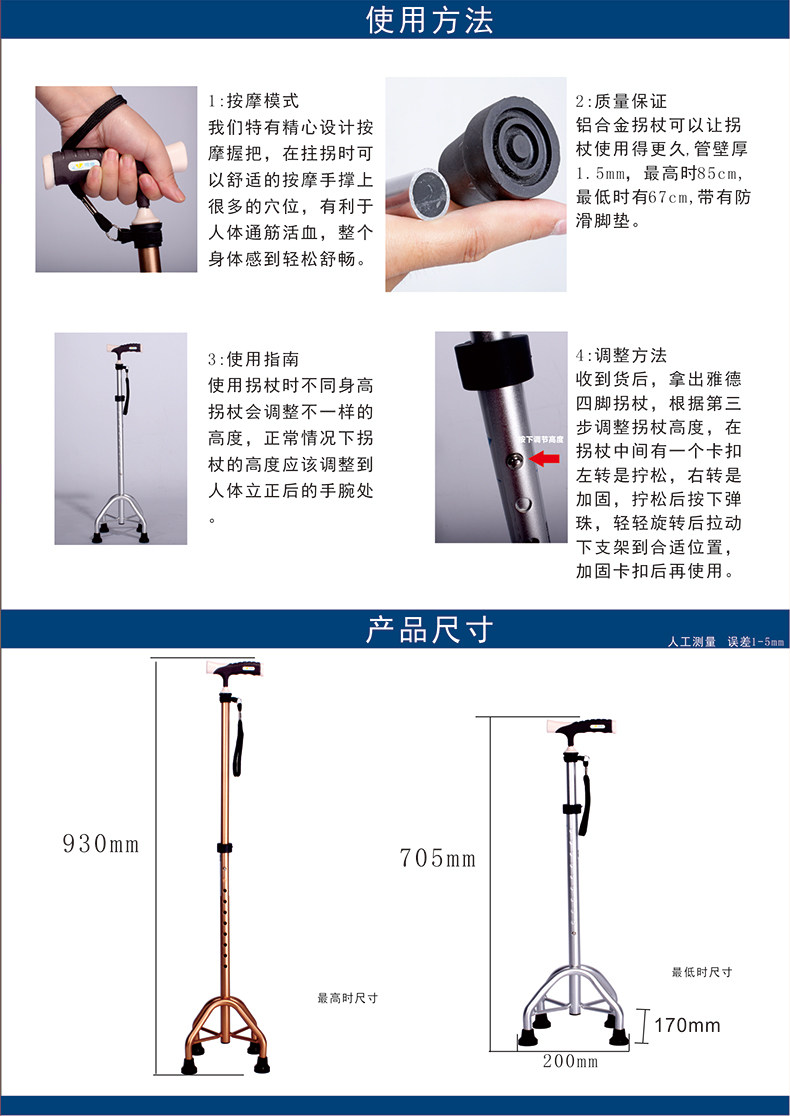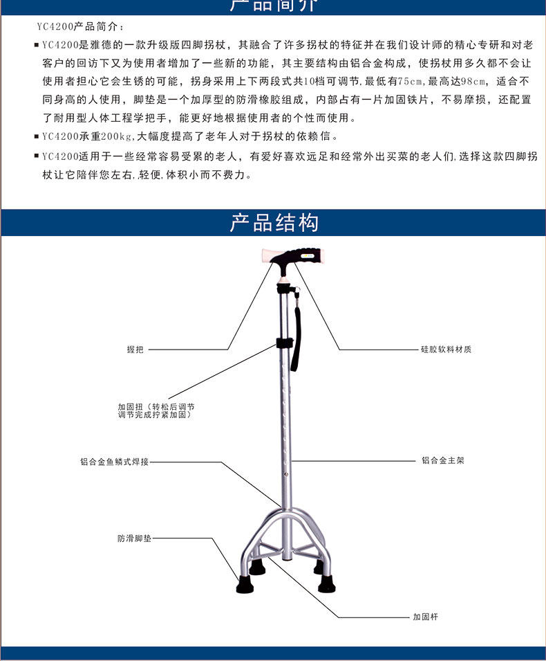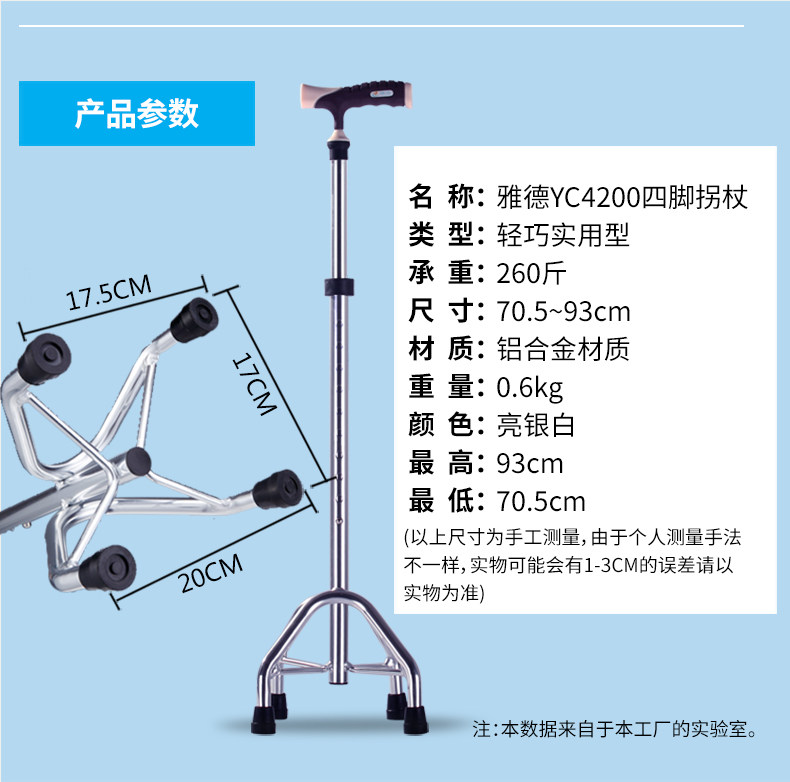 雅德 Алюминиевые сплавные тростники пожилые люди с четырьмя слоями, старые тростники, телескопические анти -слабы