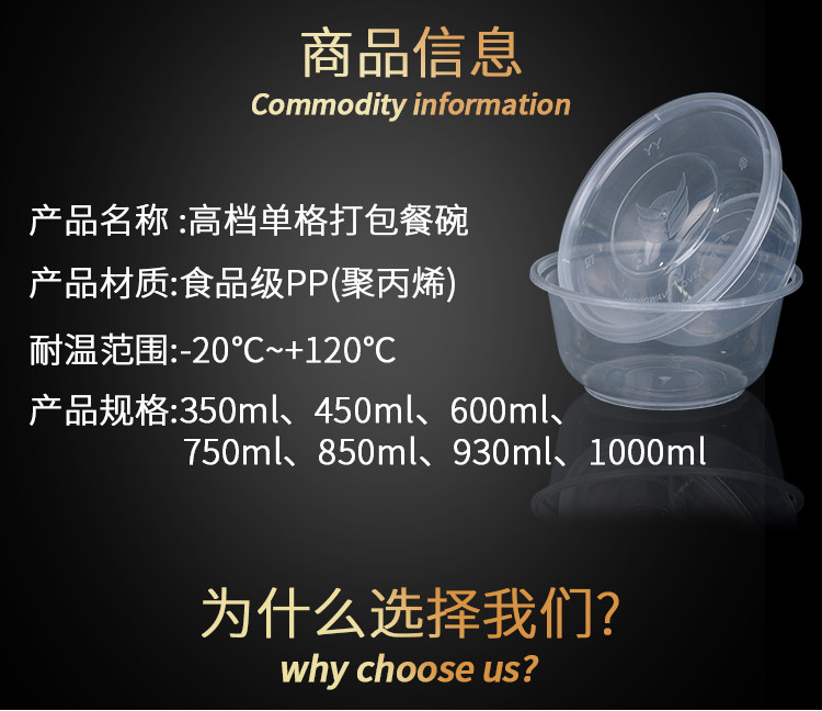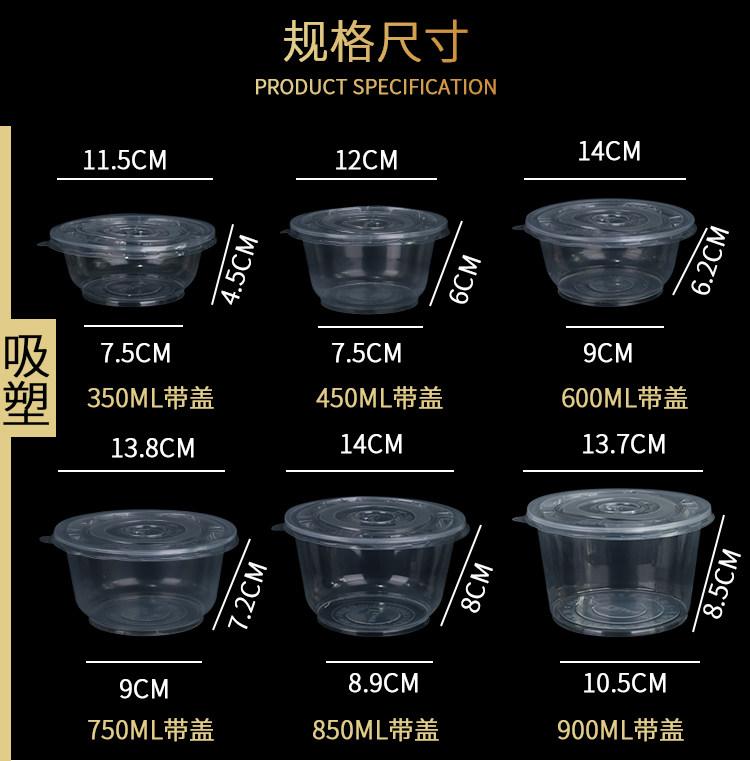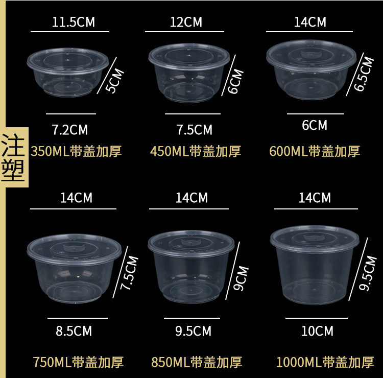 Одноразовая пластиковая чаша без за круглой крышкой 360 Коммерческая ланч -коробка Резиновая чаша лента