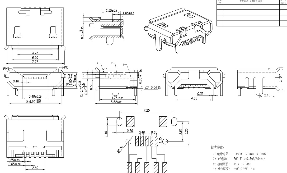 5p Mother Seat Micro USB Socket Mk5p Miniusb Shenban 0,72 Saibao