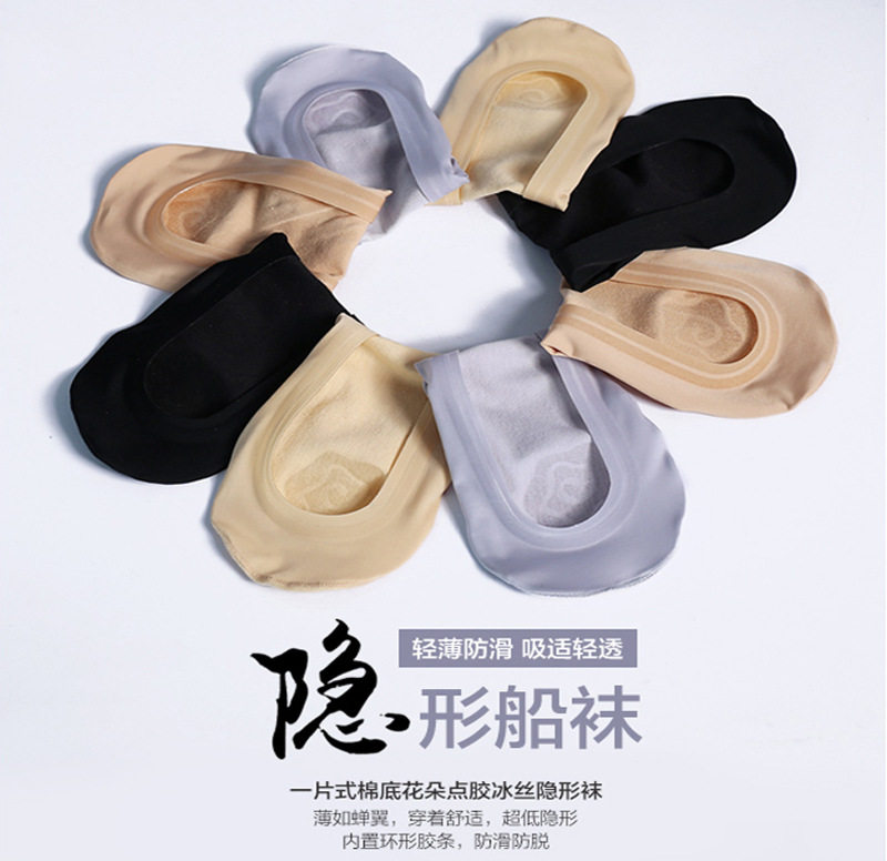 Специальное предложение Ультра -размалывание рта Скрытые носки для лодок с двойными силиконовыми футами нижние днитные носки Женские носки летние ультра -тонкие ледяные шелковые модель