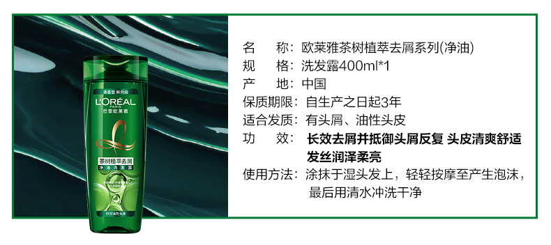 L'Oreal, обезжиривающий освежающий шампунь с экстрактом чайного дерева без силикона, контроль жирного блеска, 400 мл