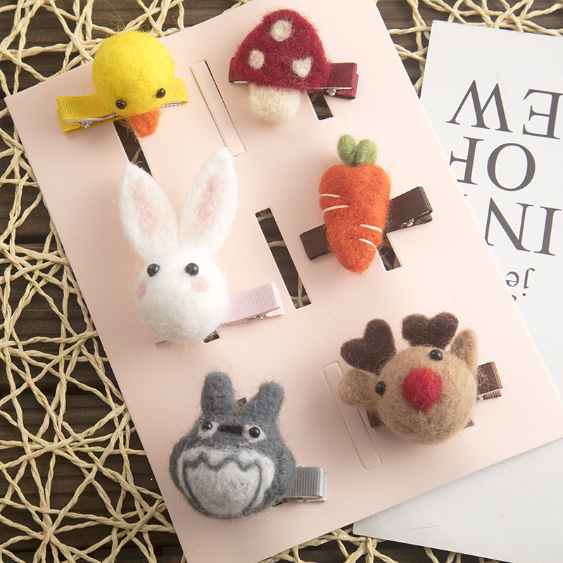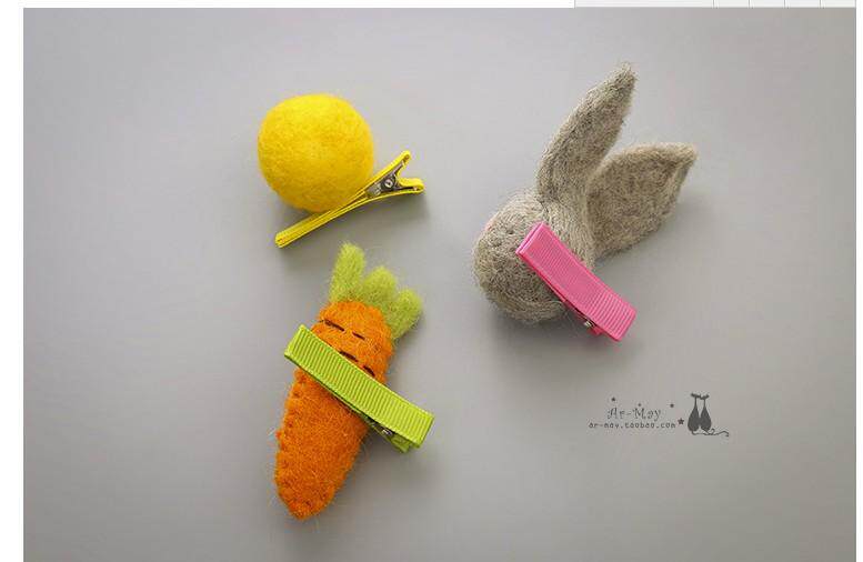 Детский милый аксессуар для волос, мультяшный шерстяной войлок ручной работы, морковный кролик, заколка для волос с грибочками-гвоздиками