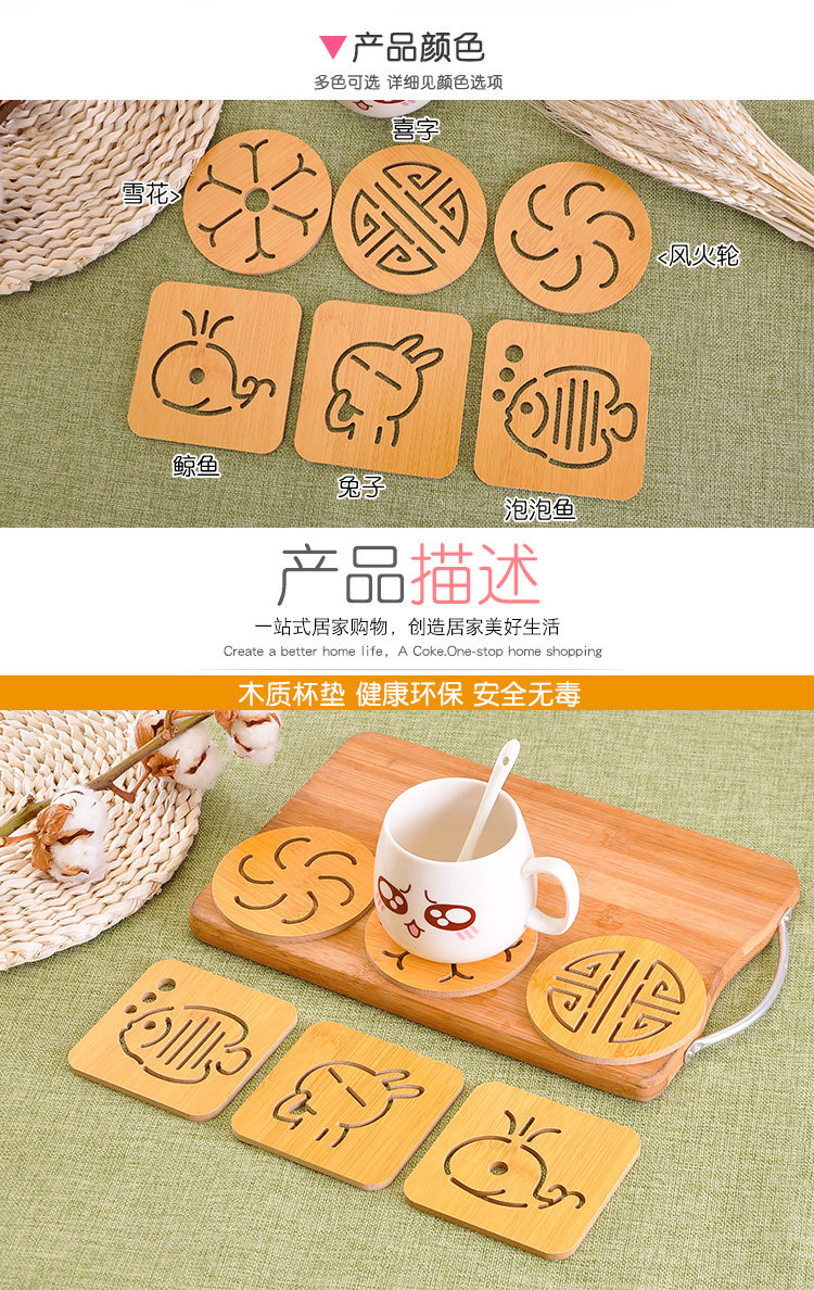Мультяшный деревянный нескользящий настольный коврик, чайная чашка, защита от ожогов