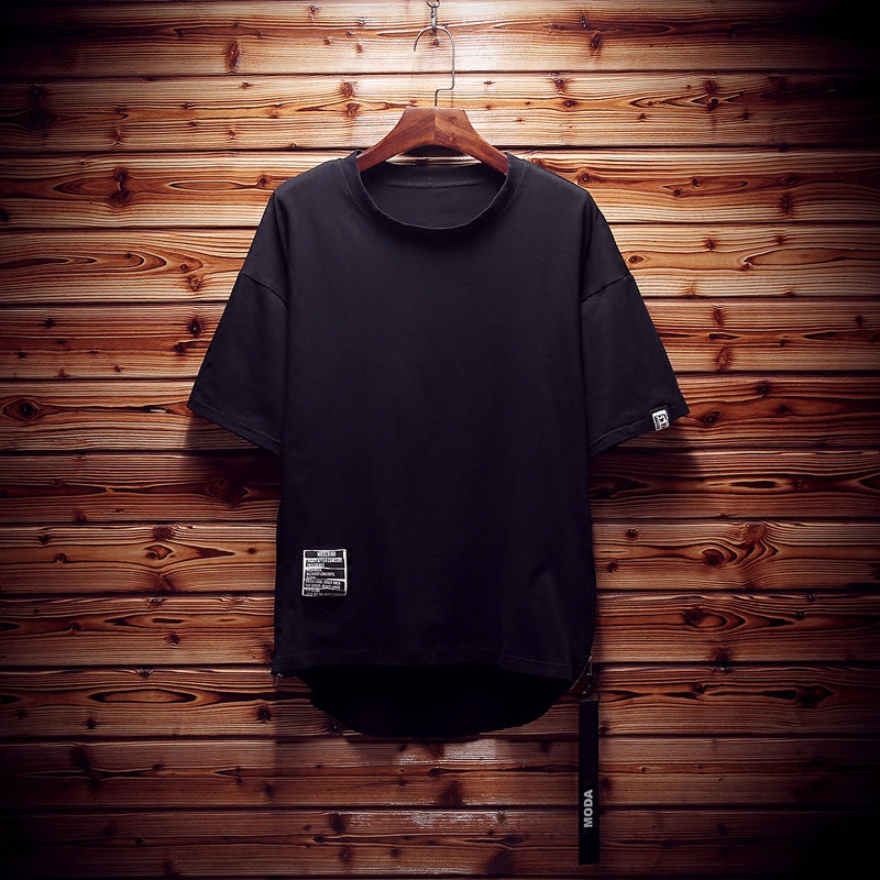 Летняя мужская длинная трендовая футболка с коротким рукавом, большой размер, средней длины