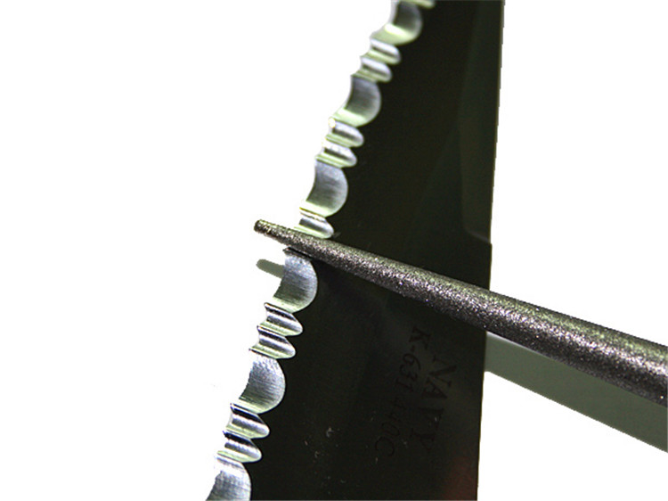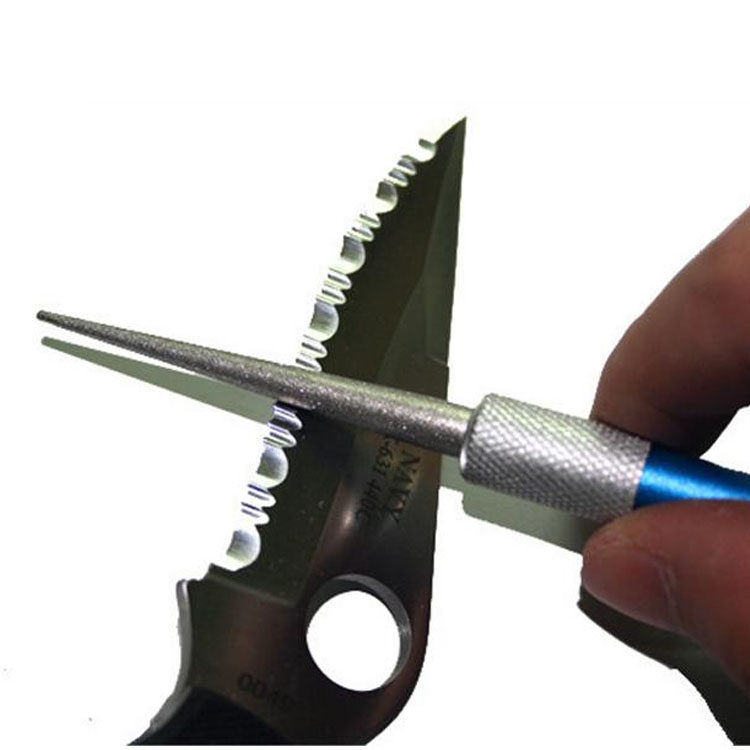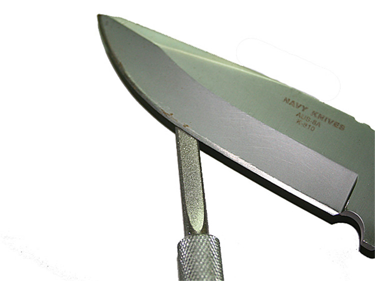 кепка.Держите нож одной рукой и держите другой нож на плоскости алмазного стержня, измельчите к ножу