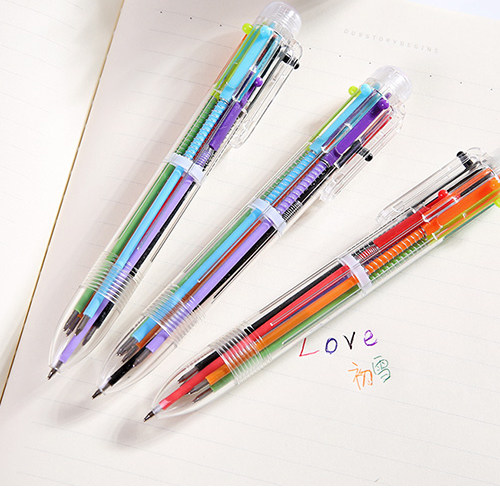 Креативные милые канцтовары, многоцветная прозрачная универсальная шариковая ручка, 6 шт