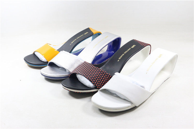 Новые тапочки, полый каблук из натуральной кожи, модные босоножки на высоком и низком каблуке, летние повседневные туфли на каблуке специальной формы конфетного цвета.