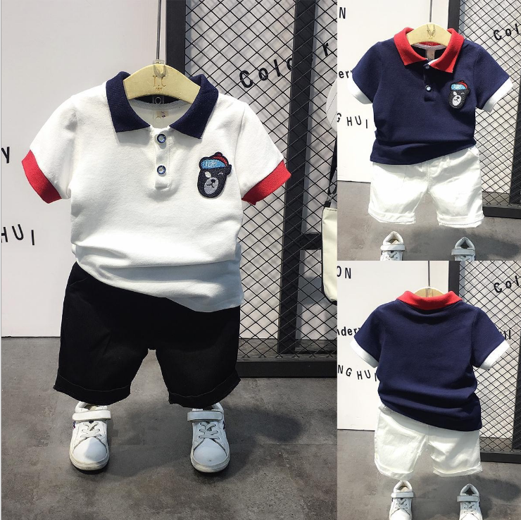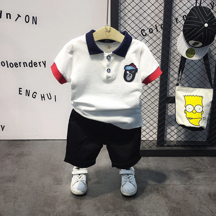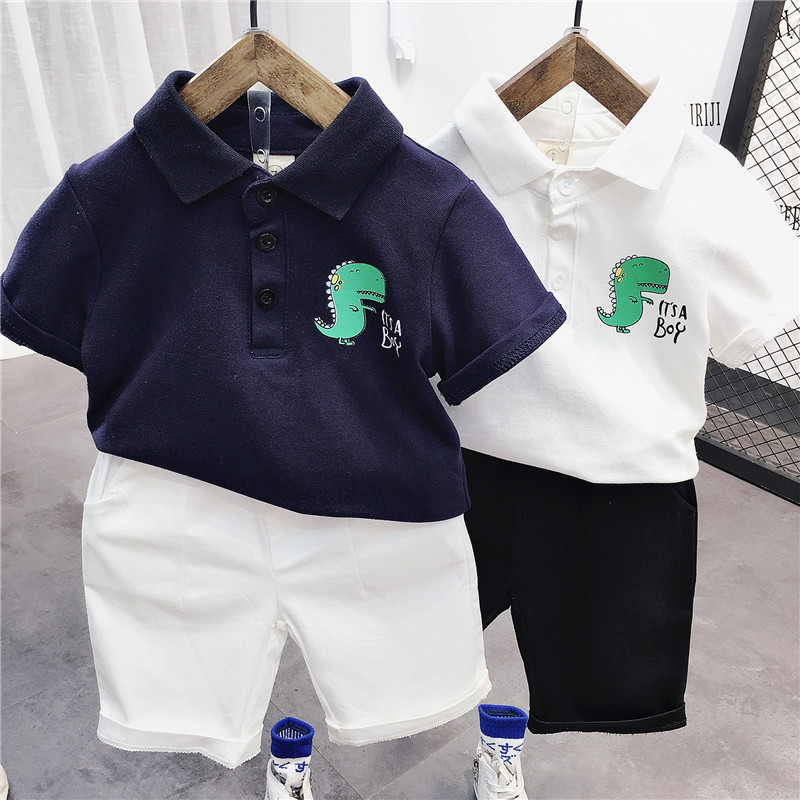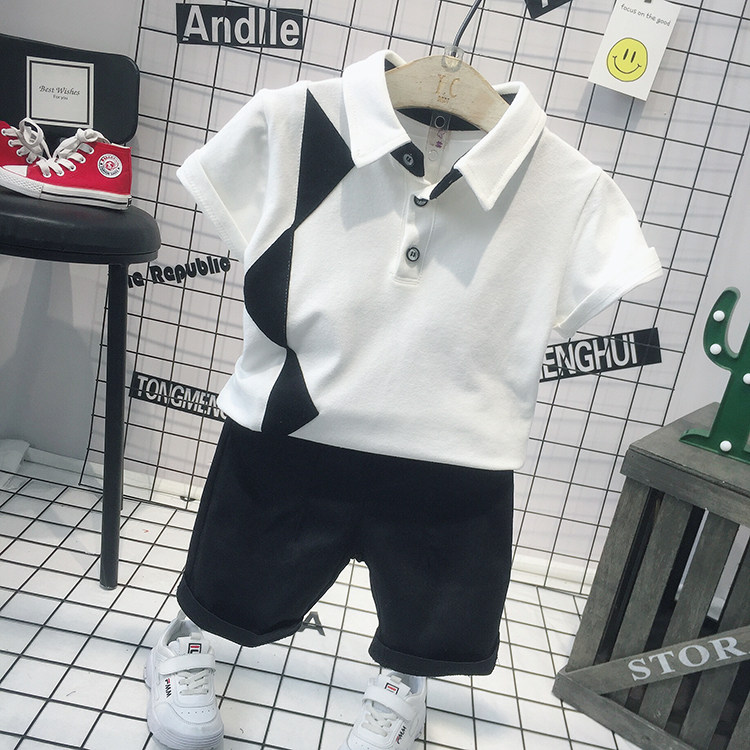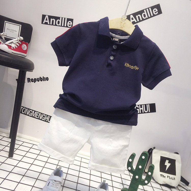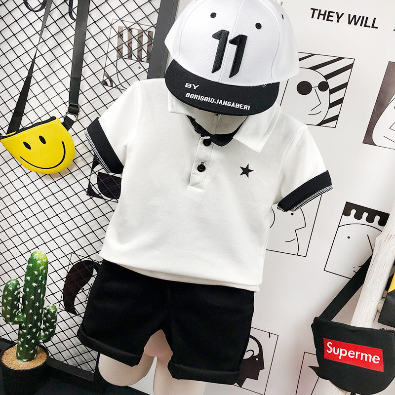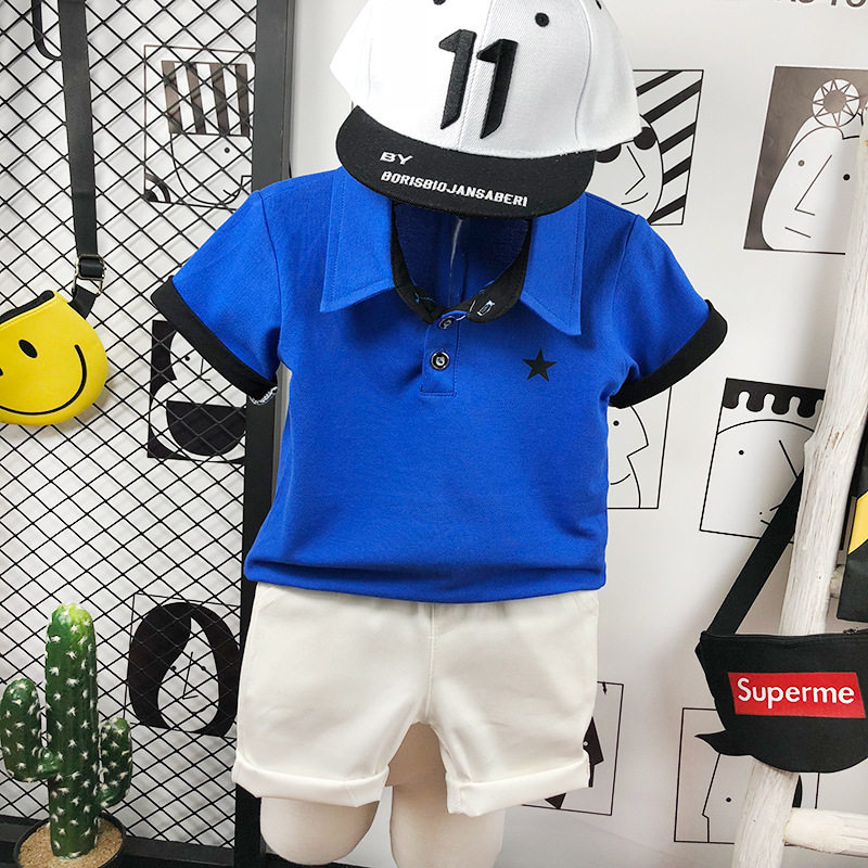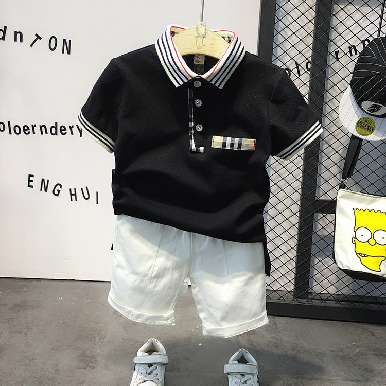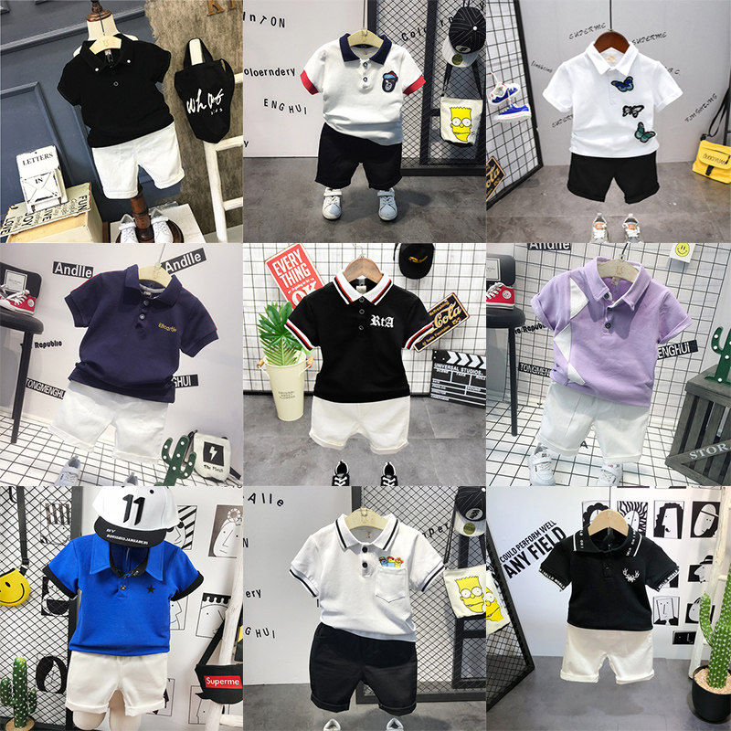 Летняя футболка polo для мальчиков, детская футболка с коротким рукавом, комплект, в корейском стиле, детская одежда