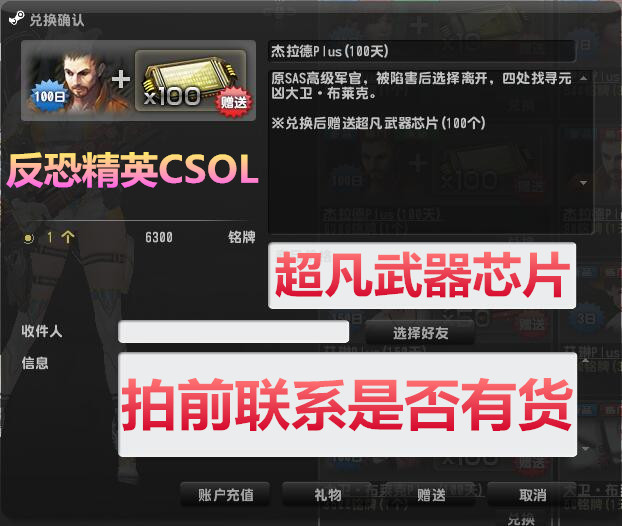 [Вторая отправка] Анти -террористская элита CSOL Gerald Plus100 дней+100 凡 Чипсы для оружия/OP к черному туману