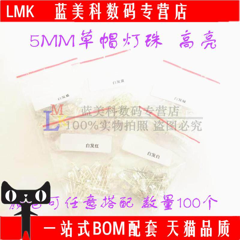 6.5 Юань = 100 5 мм соломенная шляпа с светодиодами светодиодные лампы F5 красный, желтый, синий, зеленый и белый каждый всего 100
