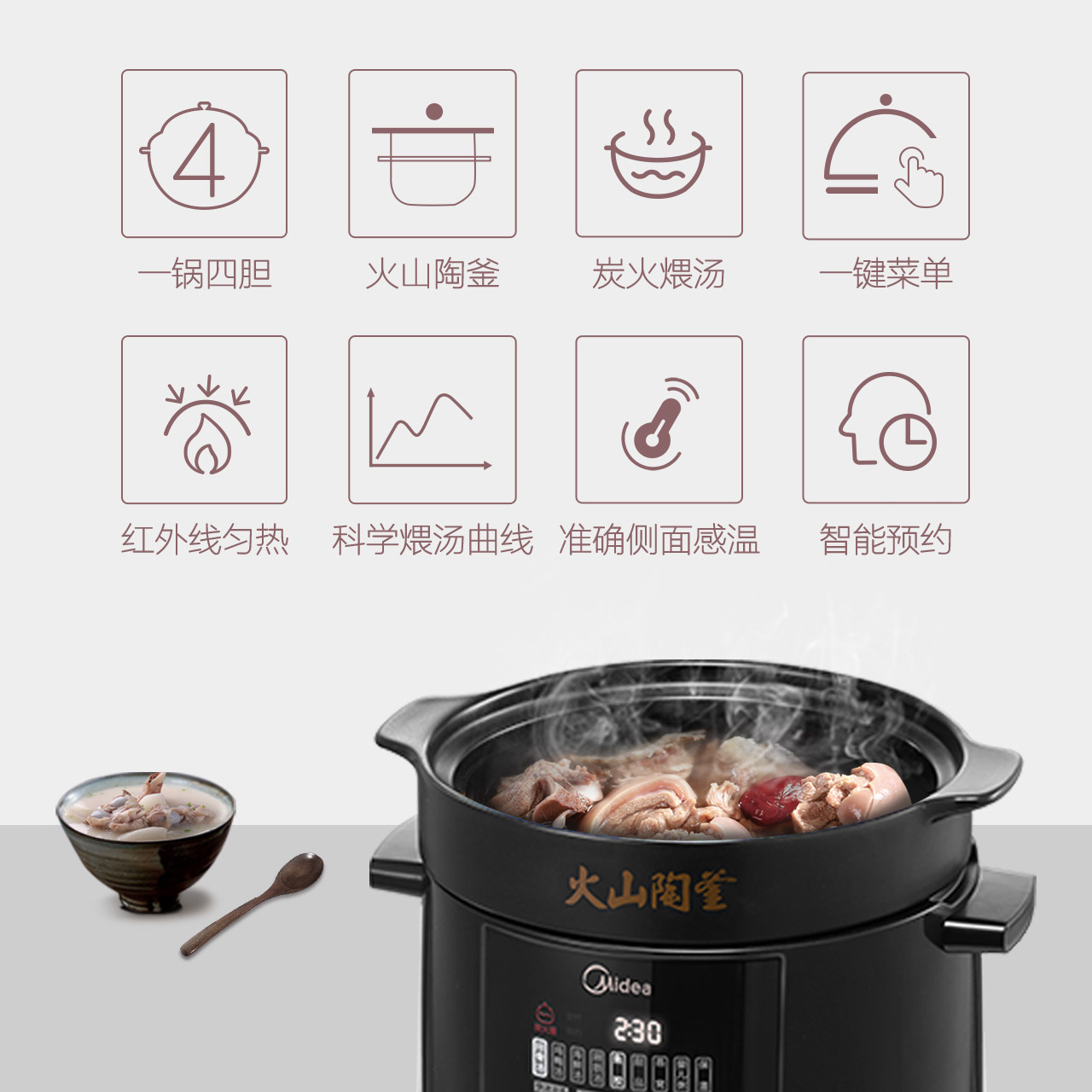 Midea/美的 Тгс40W тушеной сковорочной плита Потхерная горшка горшок горшок с горшка кара кара капа Здоровье керамическая гидроэнергетика Тушеное тушеное горшок с тушеным горшками