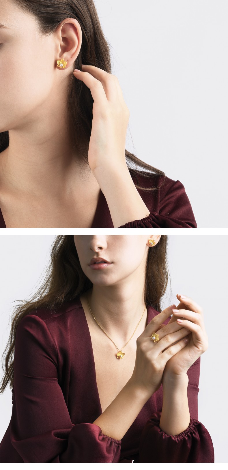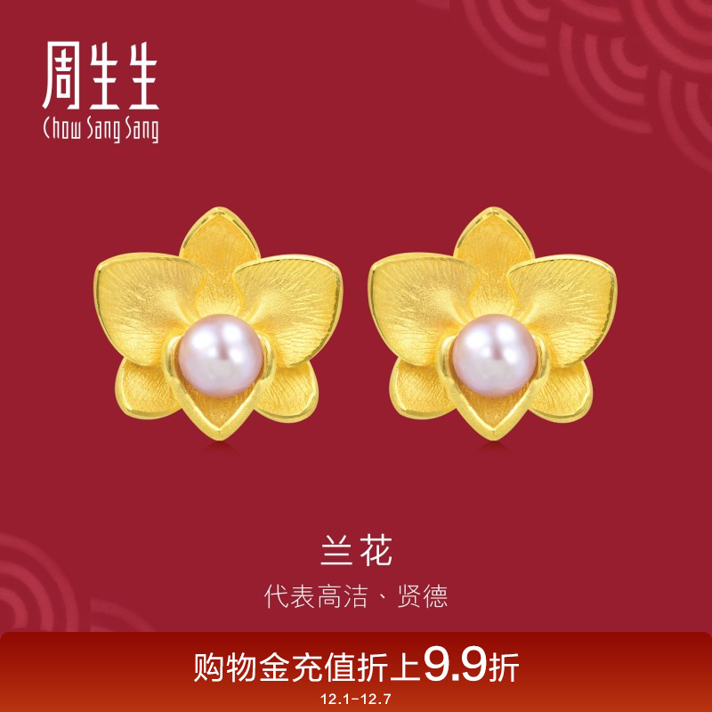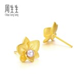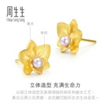 周生生 Золотые серьги из жемчуга, орхидея