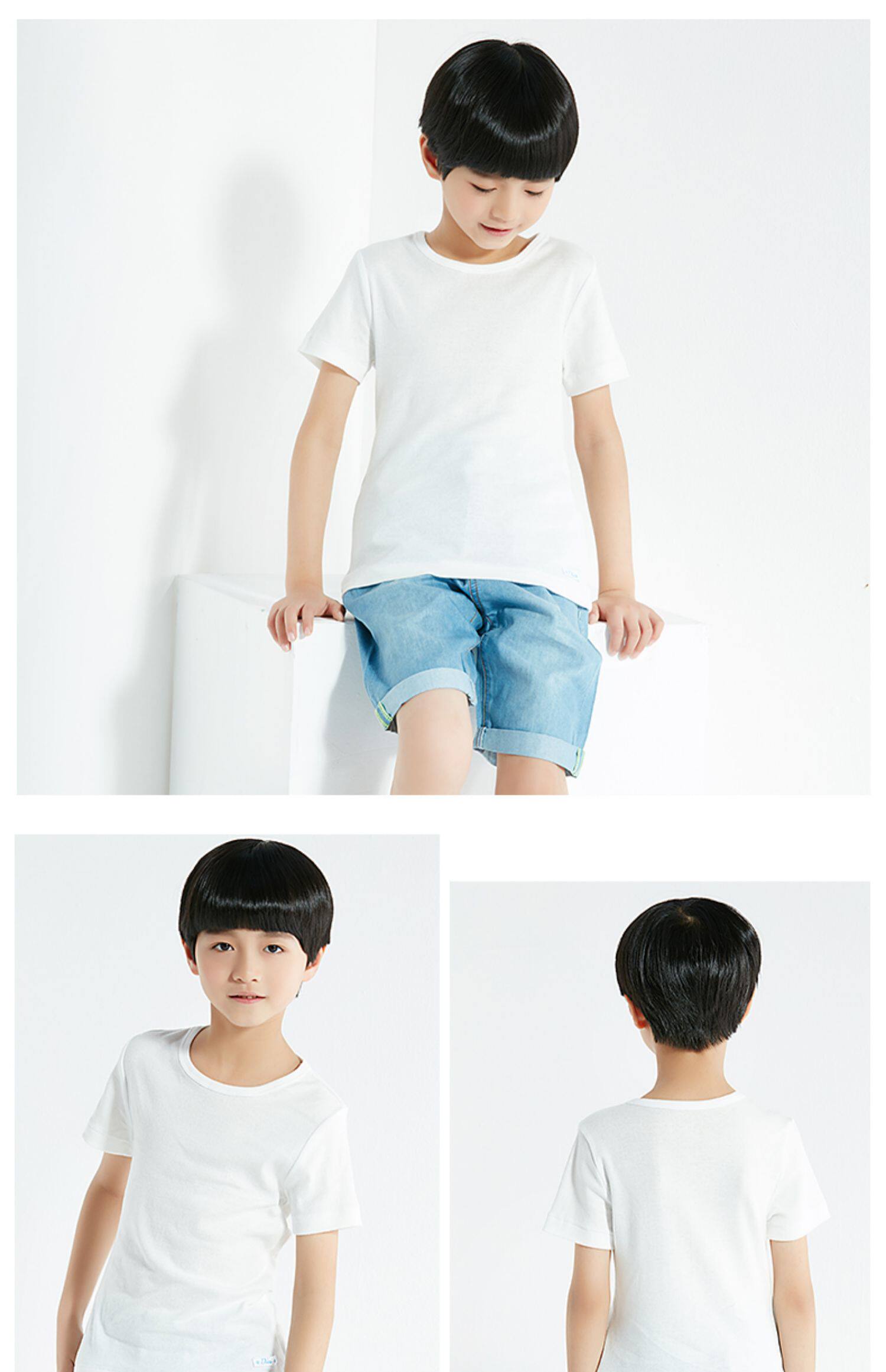 Хлопковая белая детская базовая приятная телу летняя футболка с коротким рукавом для мальчиков, подходит для подростков
