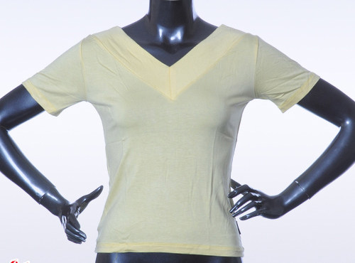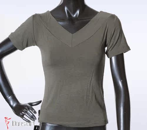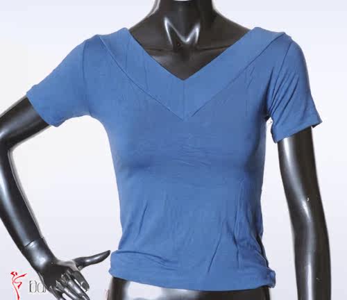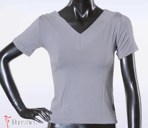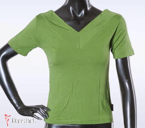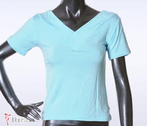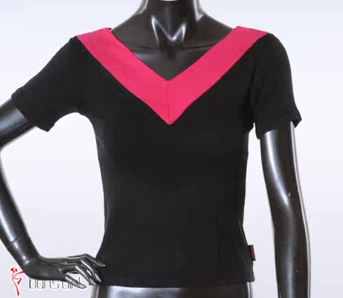 Бесплатная доставка Даншиго Женская танцевальная одежда Летняя тренировочная одежда, хлопок, хлопок, куриный воротник двойной v -neck с коротким рукавом