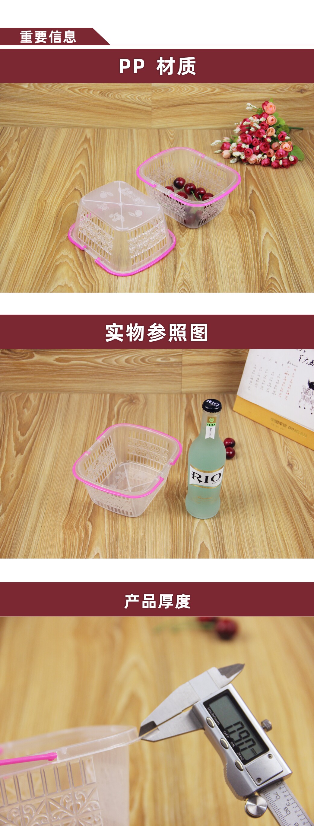 Пластиковая корзина для фруктов, переносная корзина для ягод, корзина для клубники, корзина для сбора фруктов, маленькая корзина, корзина для фруктов, корзина для вишни без крышки