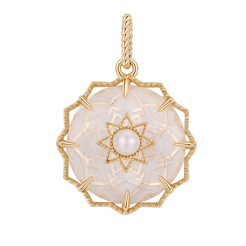 [Рис] Ванильная глазурь натуральная морская вода Акоя Жемчужный белый кристалл 14K настоящий золотой кулон