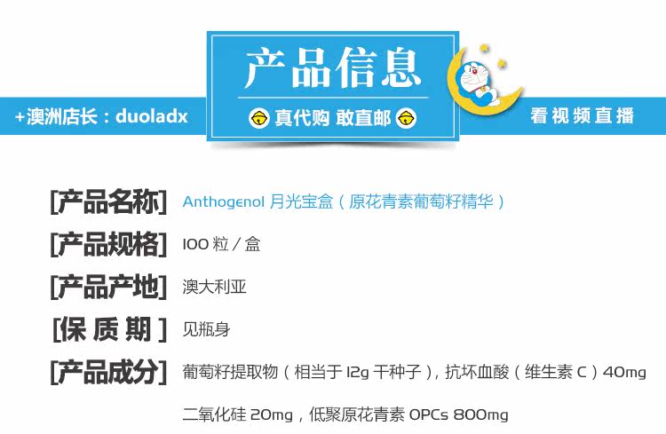 Австралийский антогенол лунный свет сокровища натуральные разбавленные оригинальные антоцианиновые виноградные семена Essence 100 капсулы