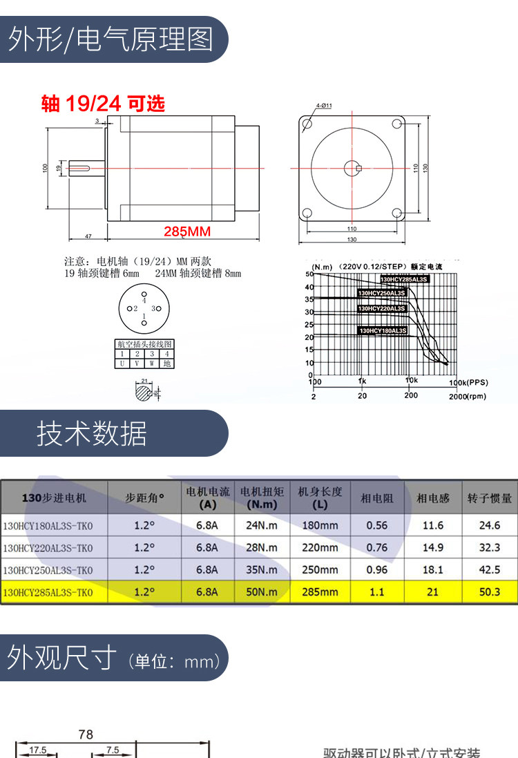 130 -Шаг Моторный набор 130HCY285AL3S Крутящий момент 50 нм с 2270 мл.