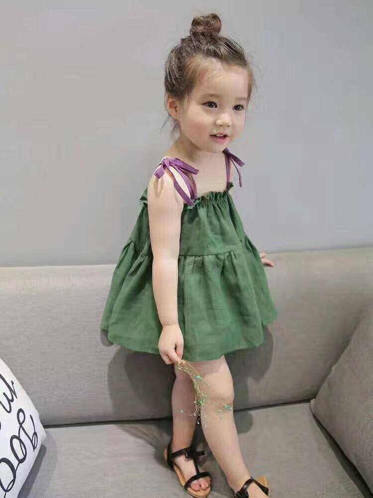 Летнее платье-комбинация, платье без рукавов для девочек, 0123456 лет, в корейском стиле, из хлопка и льна