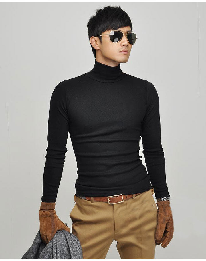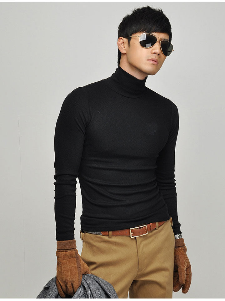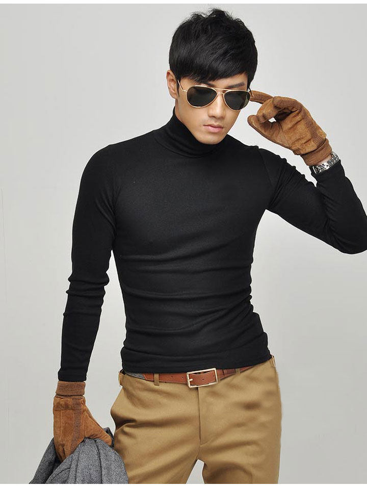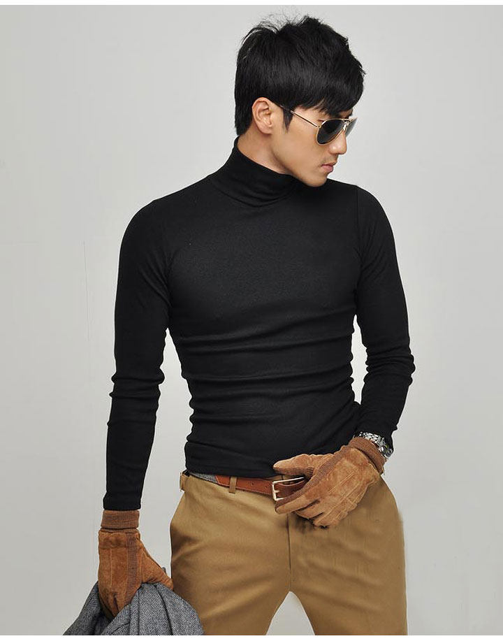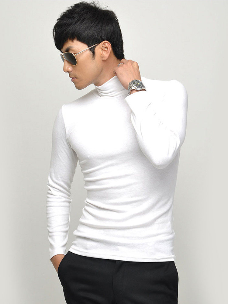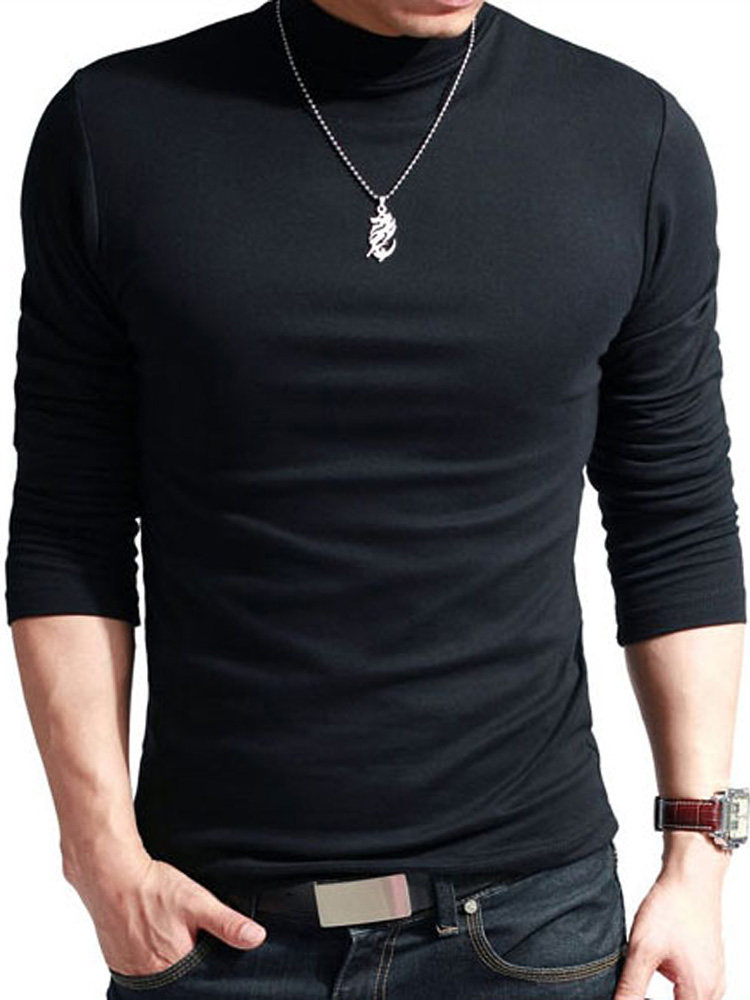 Мужская футболка с высоким воротником, хлопковые футболки