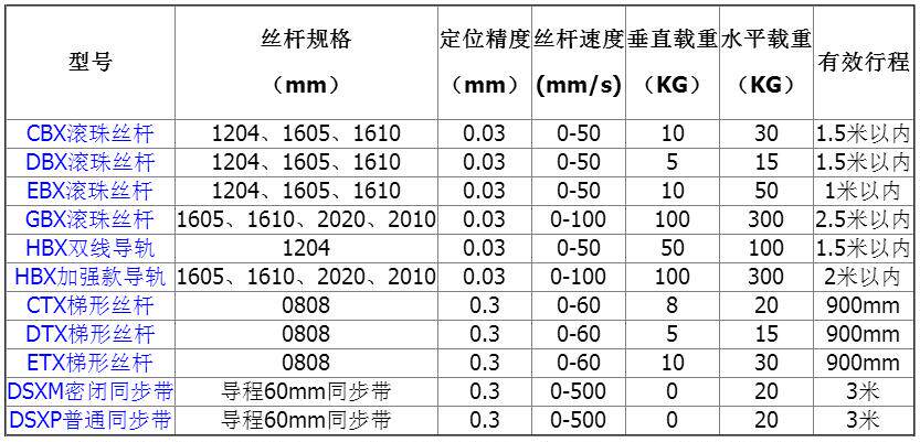 модель | Спецификация винта (мм) | Точность позиционирования (мм) | Винт скорость (mm/s) | Вертикальная нагрузка (КГ) | Горизонтальная нагрузка (КГ) | Эффективный маршрут |