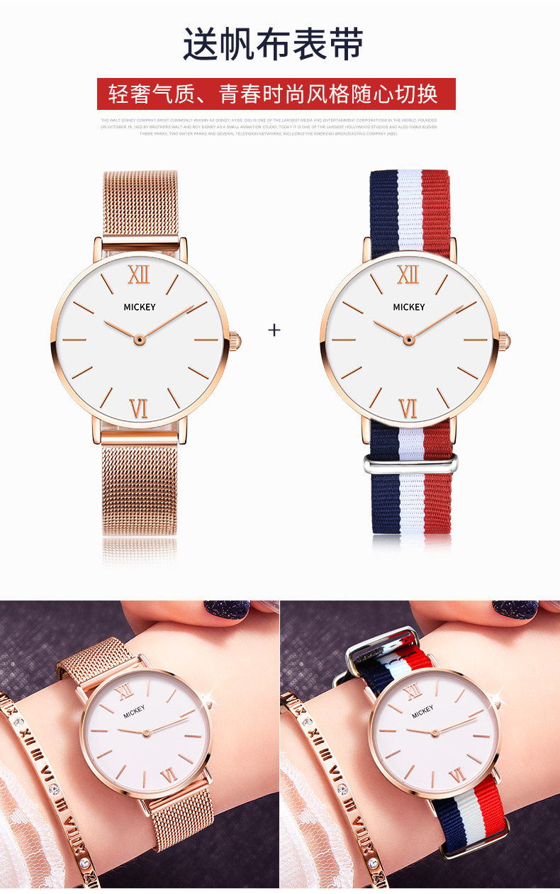 Дисней, водонепроницаемые модные трендовые часы, в корейском стиле, простой и элегантный дизайн, Франция
