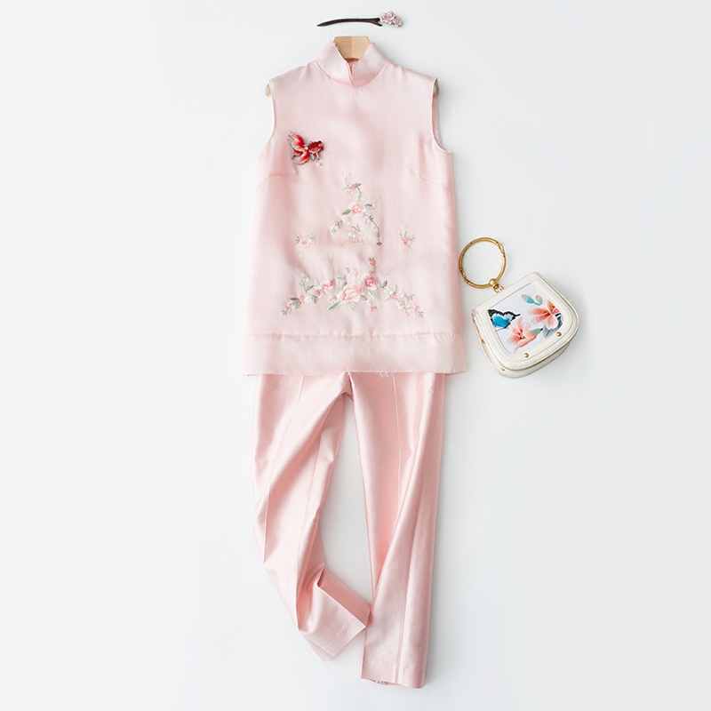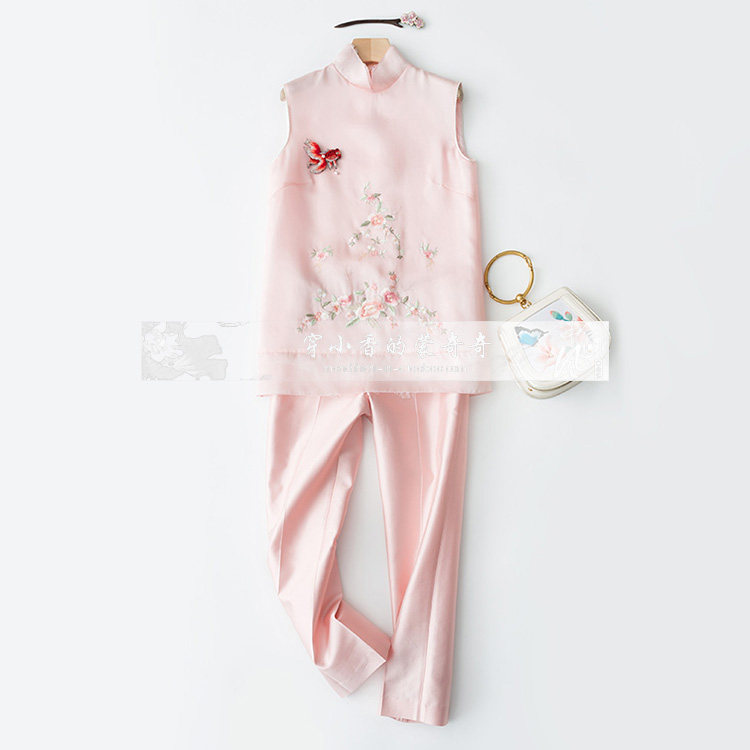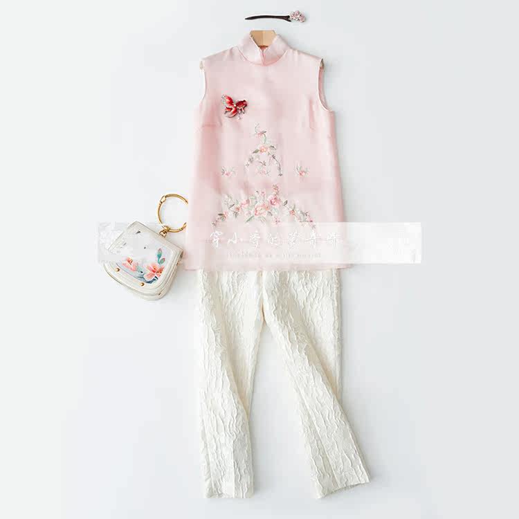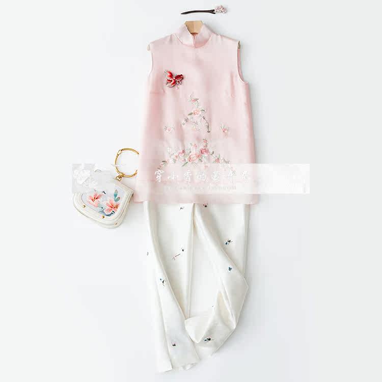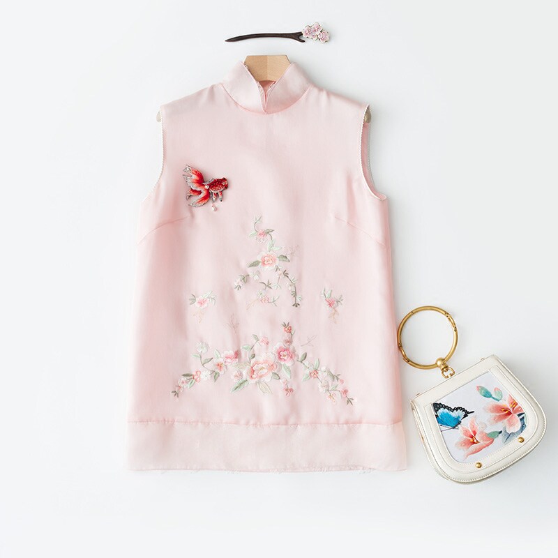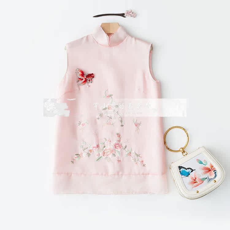 Шелковая осенняя майка топ без рукавов, термобелье, платье, юбка, с вышивкой, китайский стиль