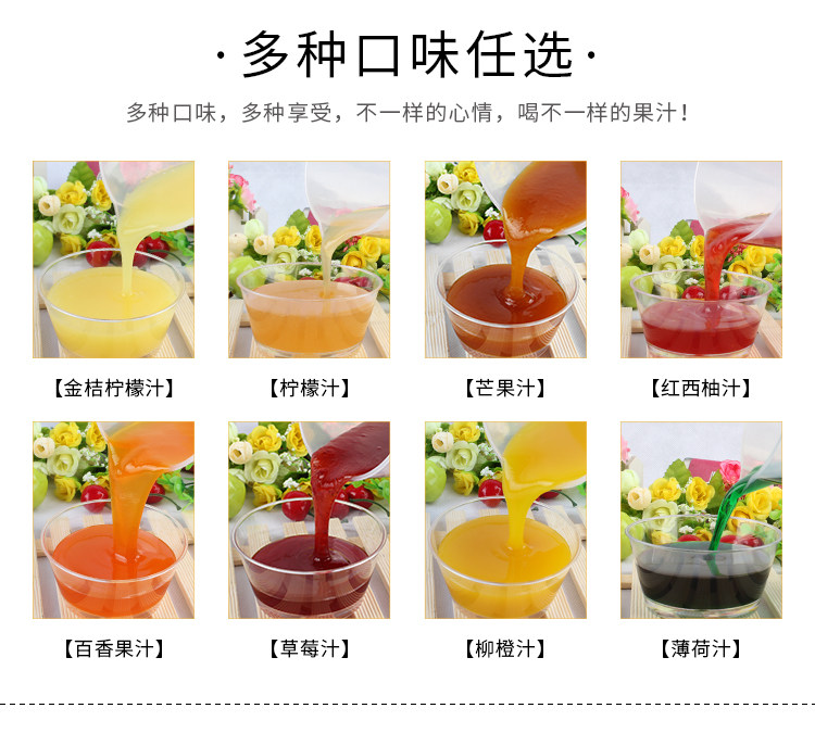 | Вкус: | Кумкват лимонный сок, Сок маракуйи, Красный грейпфрутовый сок, Мята, Лимонный сок, Клубничный сок, Апельсиновый сок, Сок манго |