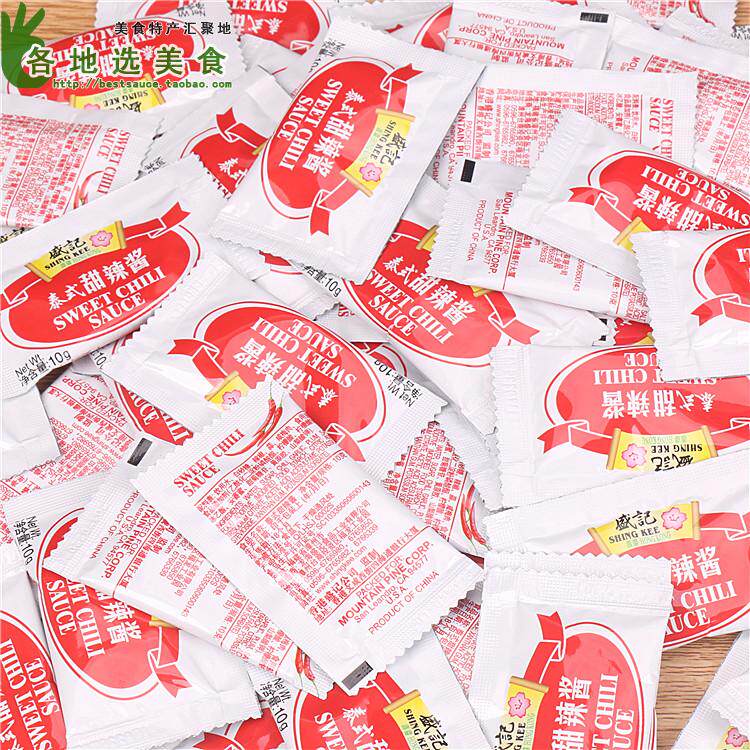 Sheng Ji Thai -стиль сладкий и пряный соус 10 г*100 мешков с тесто, прочитанным сладким соусом из чили, жареные кусочки курицы для ручной