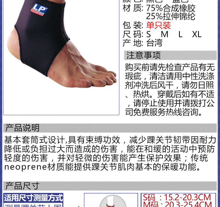 | Размер: | Обхват лодыжки S (15,2–20,3 см) [одна упаковка], Окружность лодыжки М (20,3–25,4 см) [одна упаковка], Окружность лодыжки L (25,4–30,5 см) [одна упаковка], Обхват лодыжки XL (30,5–36,7 см) [одна упаковка] |