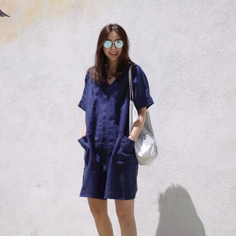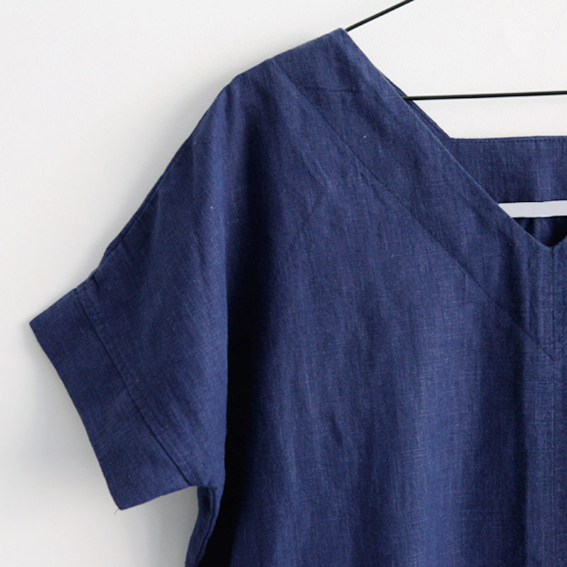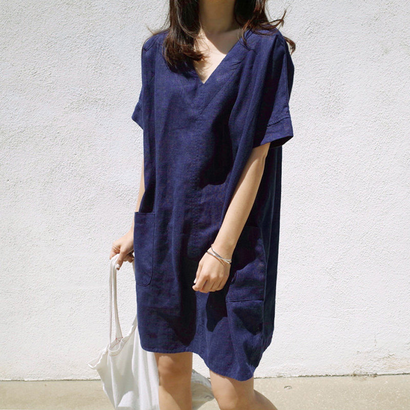 Платье, свободный прямой крой, короткий рукав, V-образный вырез, большой размер