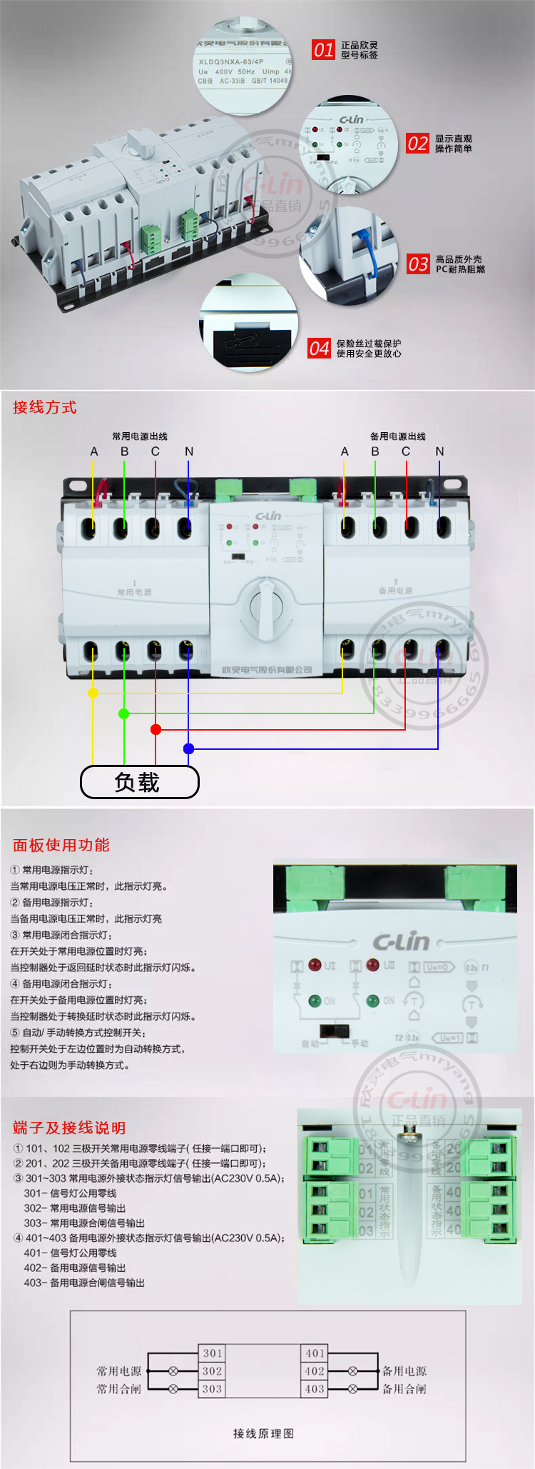 XLDQ3NX-A/B Двойной питание автоматическое переключатель 3P4P Пожарный мини-тип домохозяйства CB Class 63A.