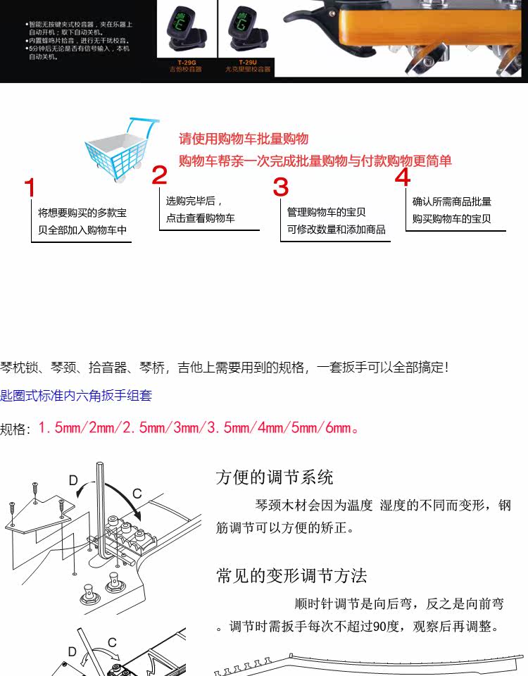 Шестиугольный гаечный ключ, комплект, гитара с аксессуарами, 0.9мм, 10мм