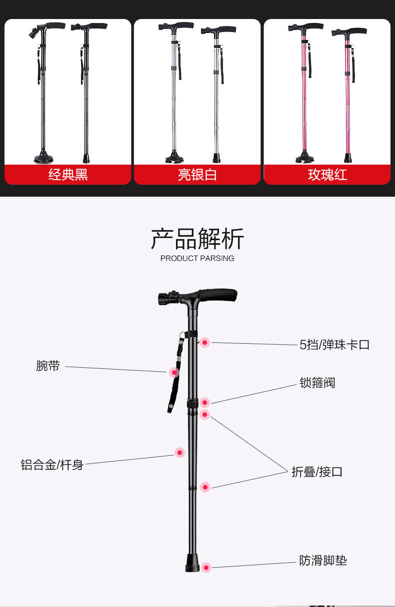 Cutrist для пожилой, анти -сластиной, легкой тростниковой тростники, четырех футов может сложить женскую погрузочную трость, пожилые люди для пожилых людей