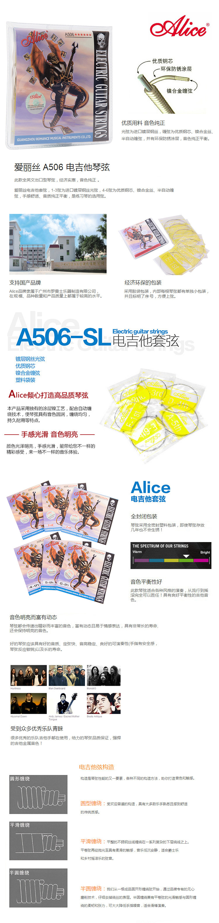 Подлинная Alice A506 008 009 010 Электрогитарные струны массовые струны рассеянные струнные анти -суреные покрытия