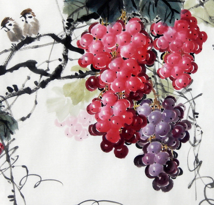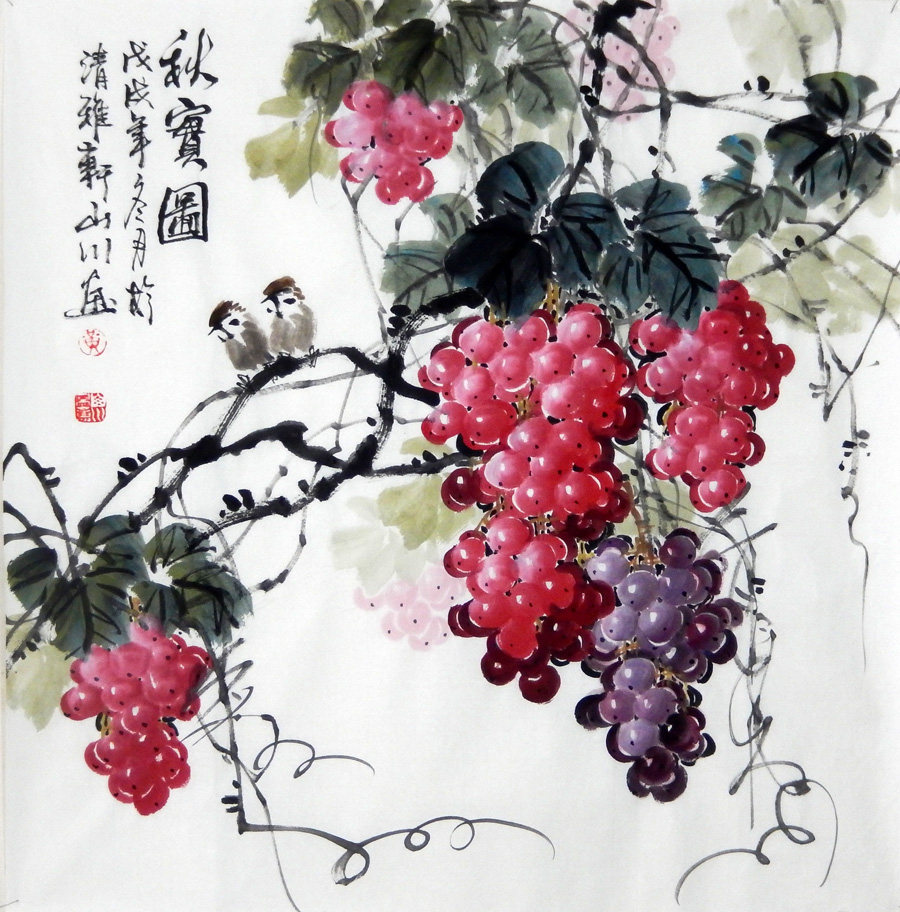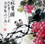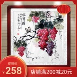 Знаменитый художник рука -по -настоящему ликвидированные виноградные цветочные и живопись с четырьмя боевыми боевыми краями квадрат Qiu Real Picture Restaurant Feng Shui Decorative Painting