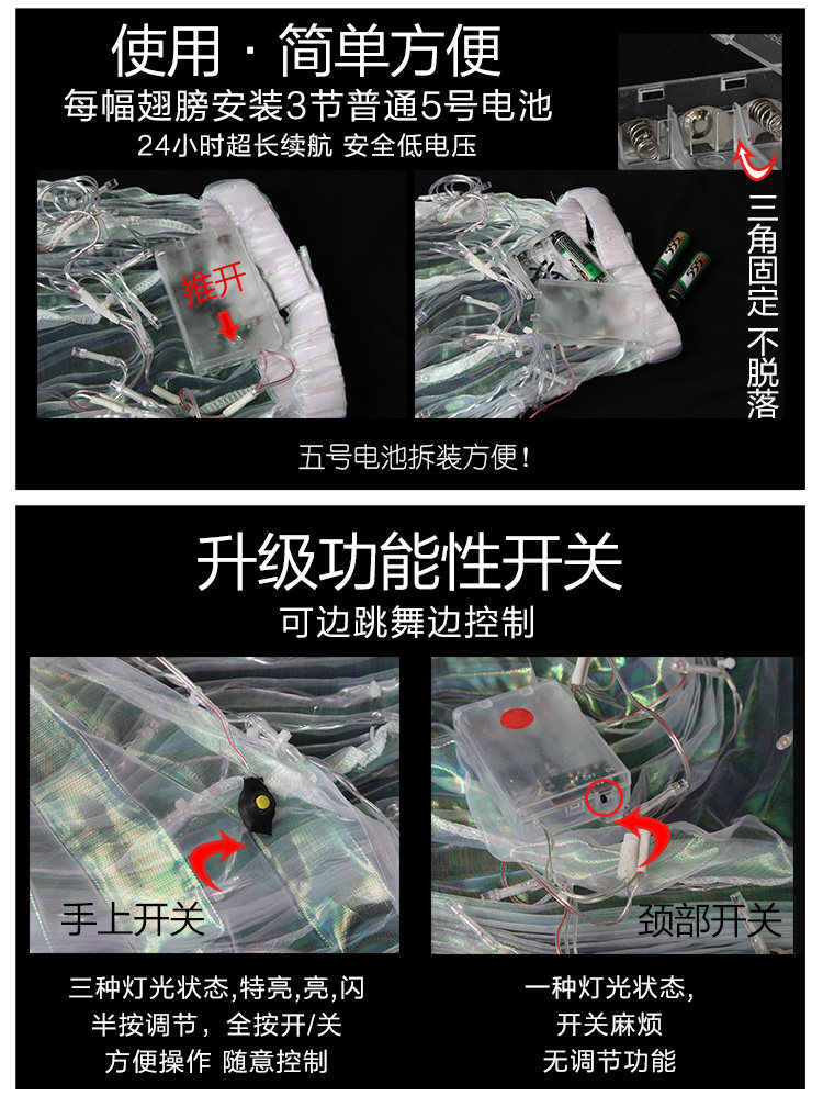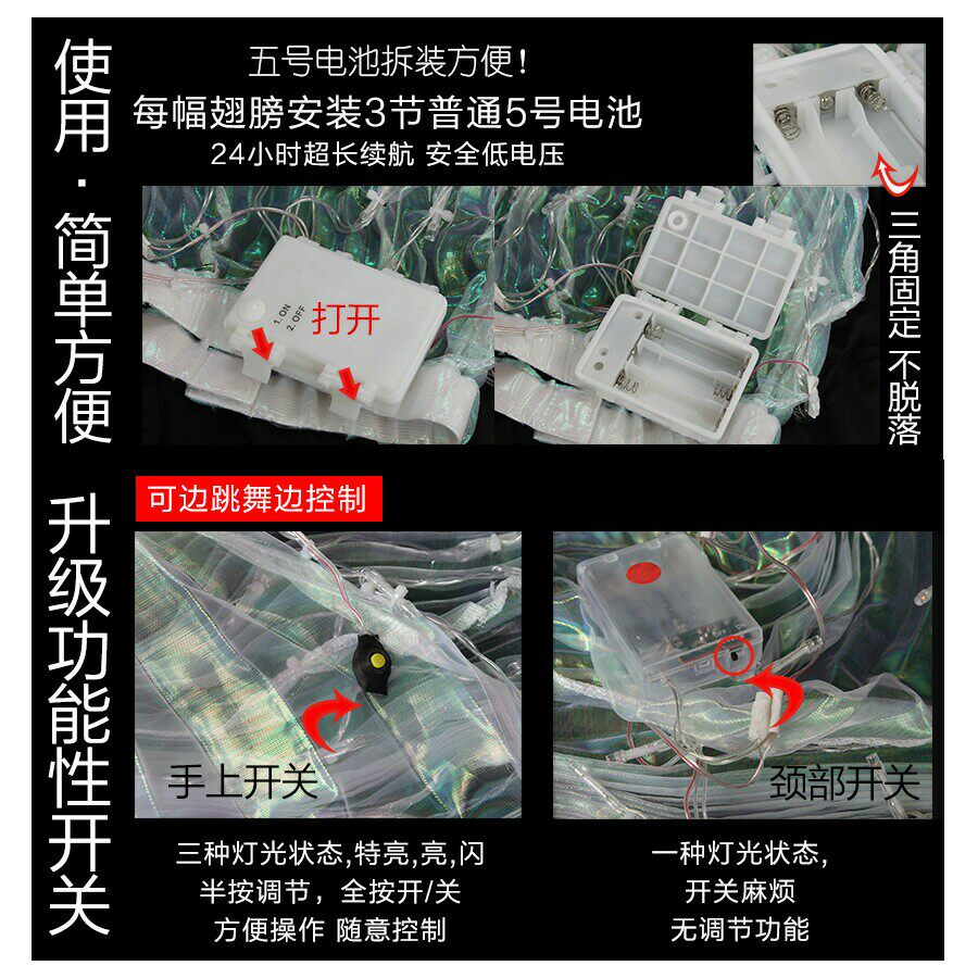 Светодиодные крылья танцевальные крылышки 360 градусов большие крылья танцы светящаяся решетка и светящиеся танцы живота