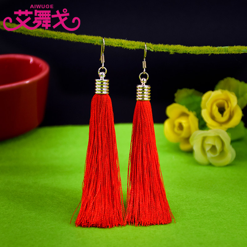 Ретро красные этнические серьги для взрослых с кисточками, аксессуар, этнический стиль