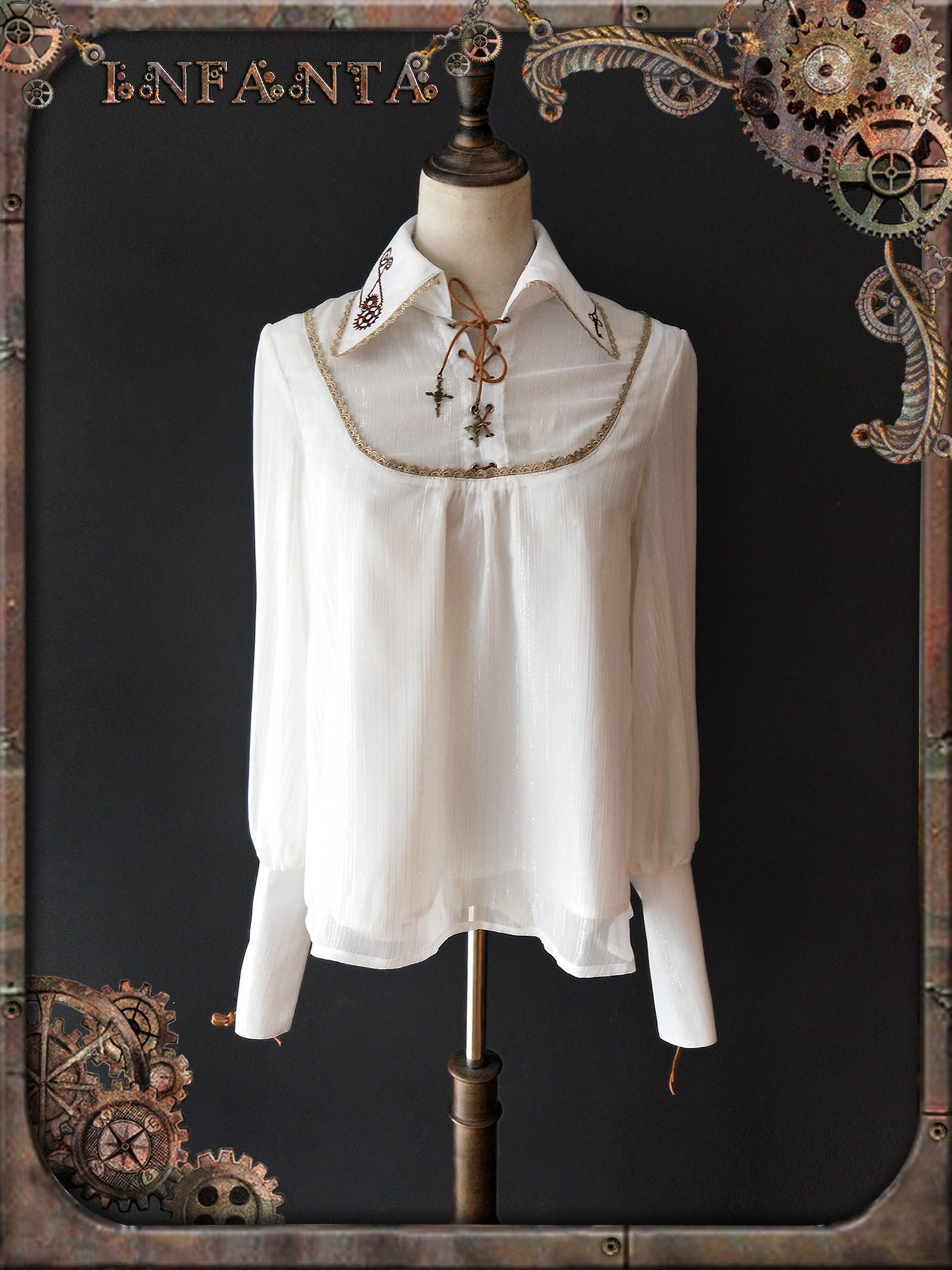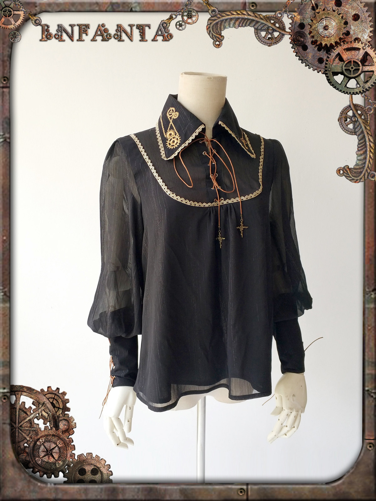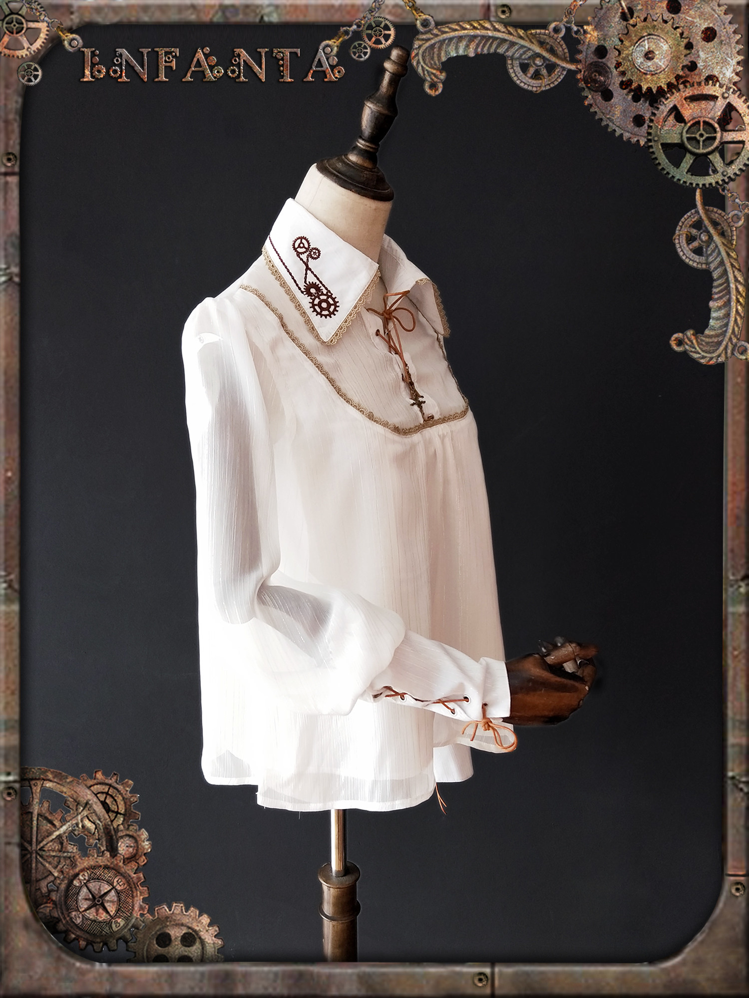 Механическая кукла, рубашка с шестернями, стиль Лолита, в стиле панк