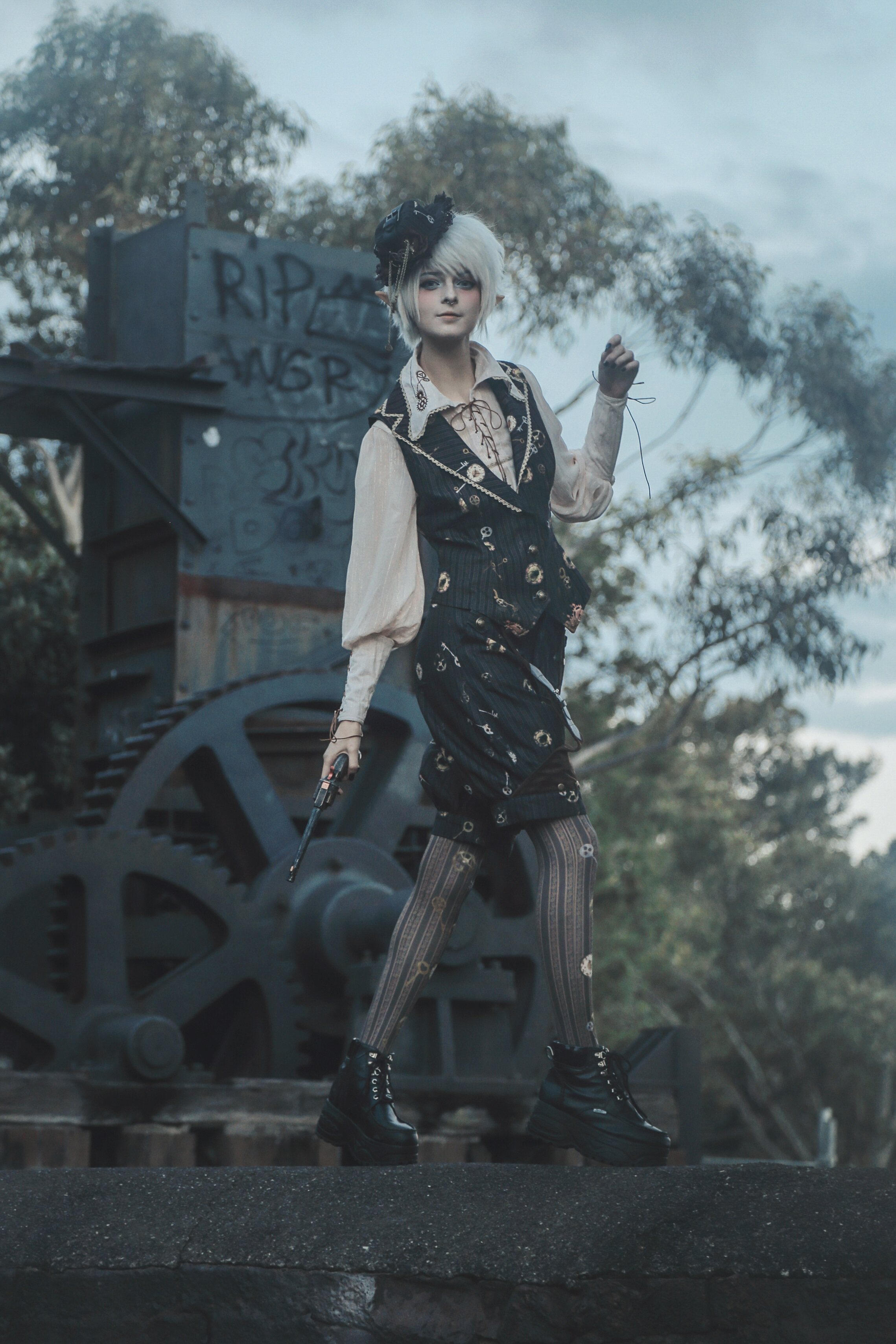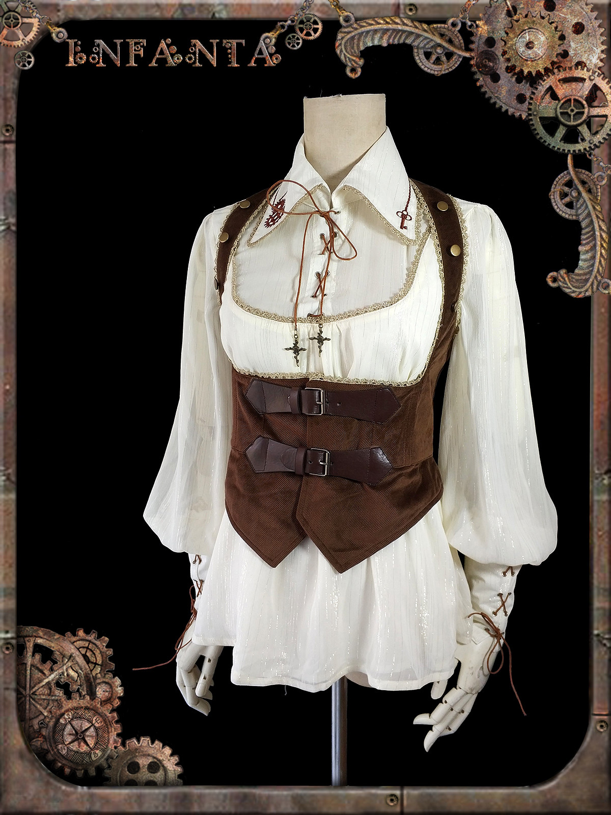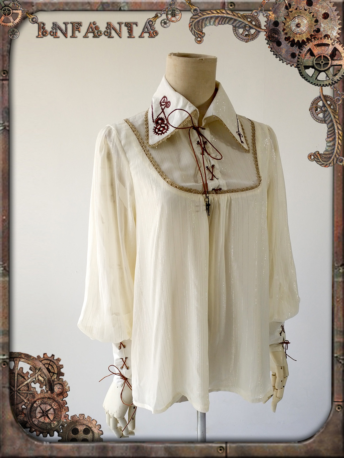 Механическая кукла, рубашка с шестернями, стиль Лолита, в стиле панк