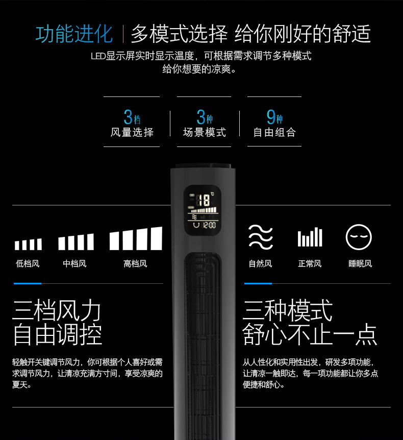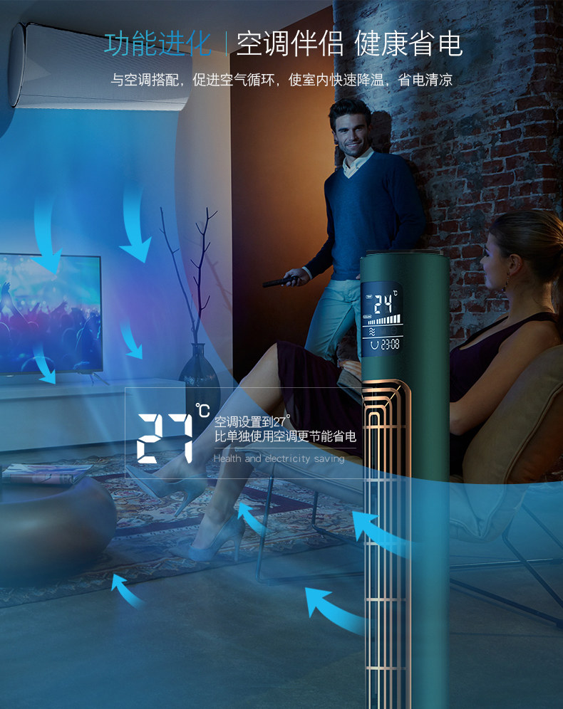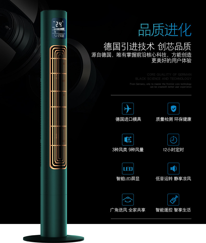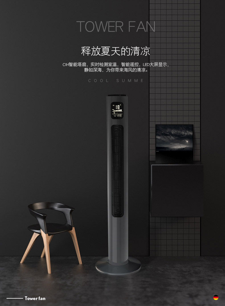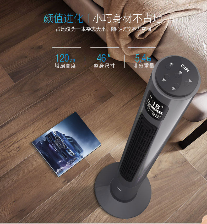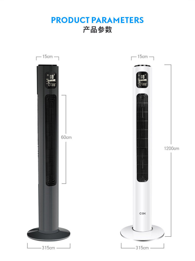 CIH Новый тип безлистного вентилятора Отрицательный ионный очищение домохозяйства -полдень -вентилятор Ультра -квиотный вертикальный круглый вентилятор
