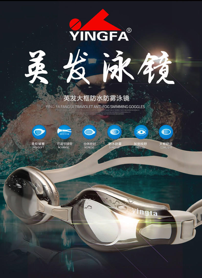 英发 Плавательная шапочка для плавания, водонепроницаемый комплект без запотевания стекол, водонепроницаемые очки для плавания подходит для мужчин и женщин