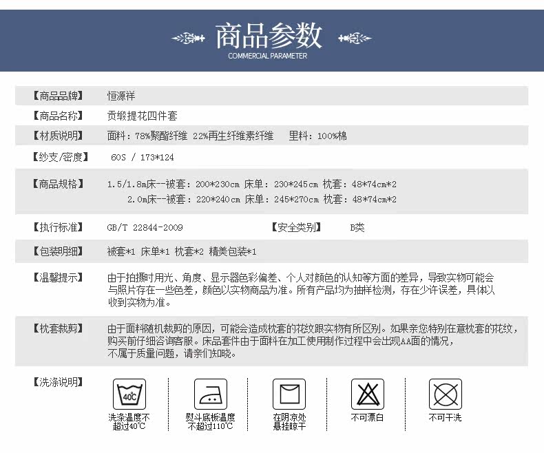 恒源祥 Покрывало, комплект, простыня, пододеяльник, 4 предмета, европейский стиль, 1.8м, 4 шт