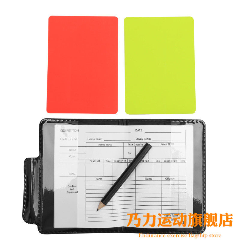 Футбольный красный и желтый рефери красная и желтая карта с кожаным карандашным рефери.